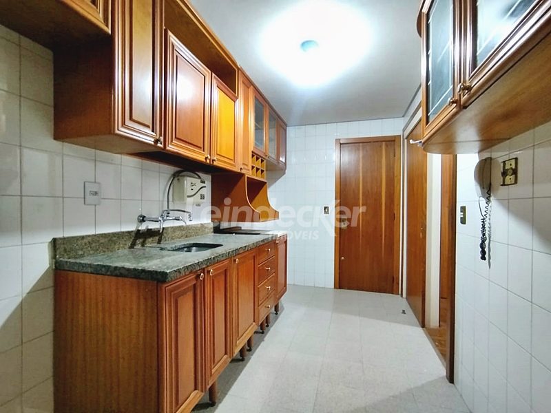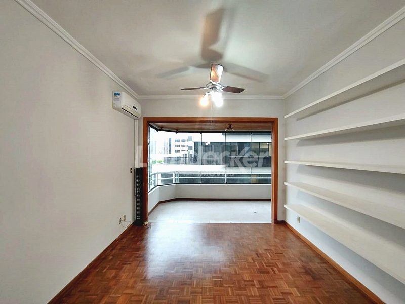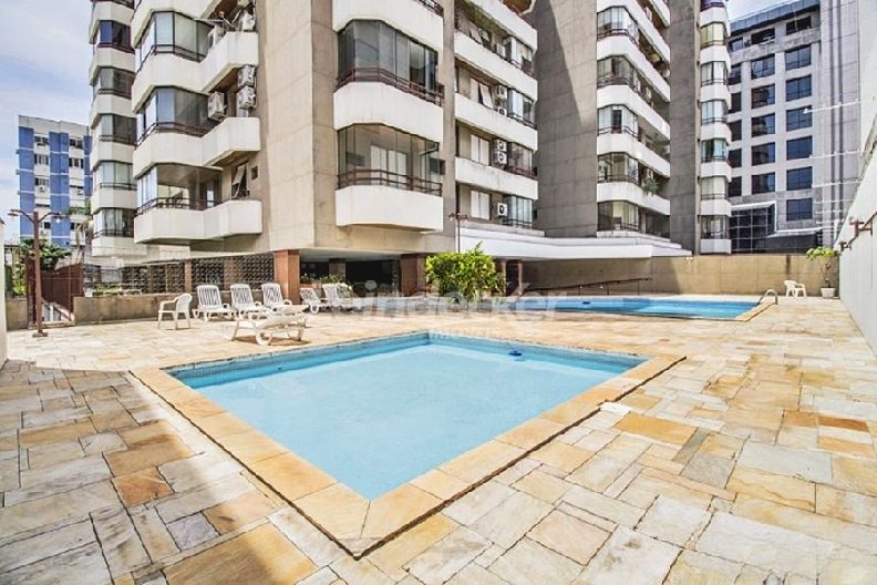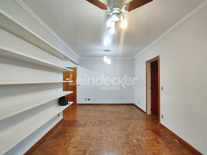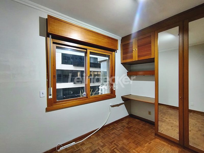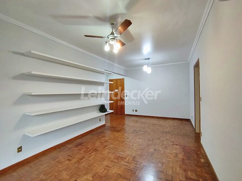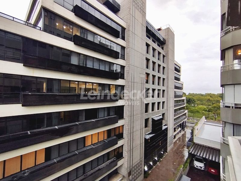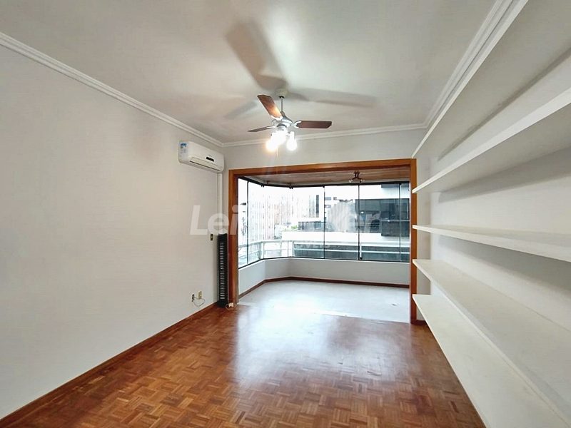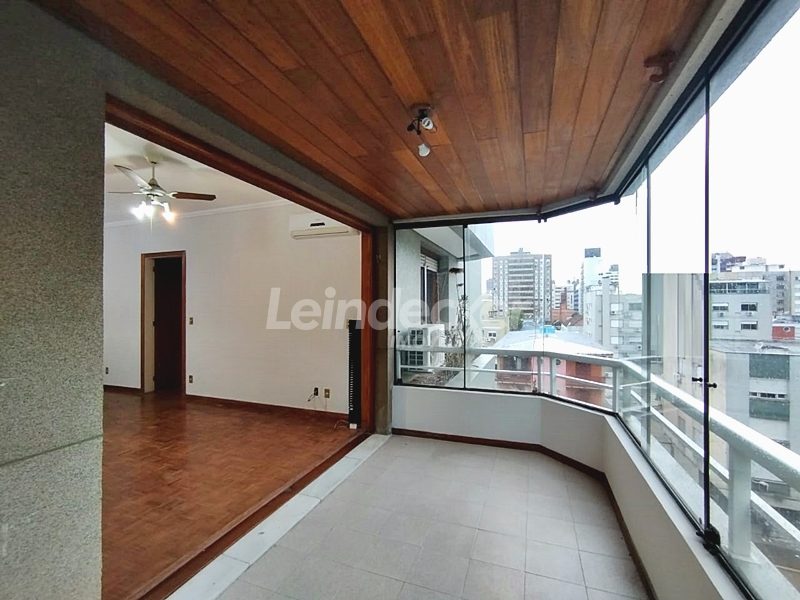 Leindecker Imóveis aluga apartamento com 111m², localizado no bairro Menino deus, frente. O Imóvel possui 2 dormitórios, dependência de empregada, lavanderia, sendo 1 suíte e sacada, living amplo em dois ambientes, sacada junto ao living com churrasqueira, cozinha com armários sob medida em madeira nobre, área de serviço, banheiro social, piso laminado. Imóvel com posição solar oeste. Possui 1 vaga de garagem coberta. Condomínio com porteiro eletrônico, interfone, Localizado próximo à academia, bar, restaurante, supermercado, agência bancária e escolas. Paradas de ônibus e lotação a poucos metros do imóvel.