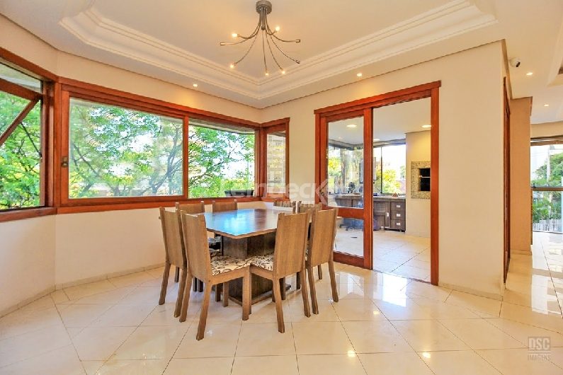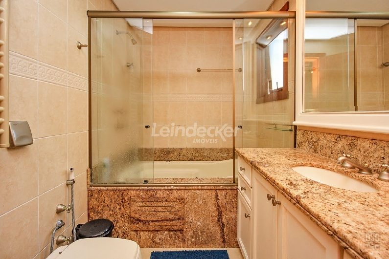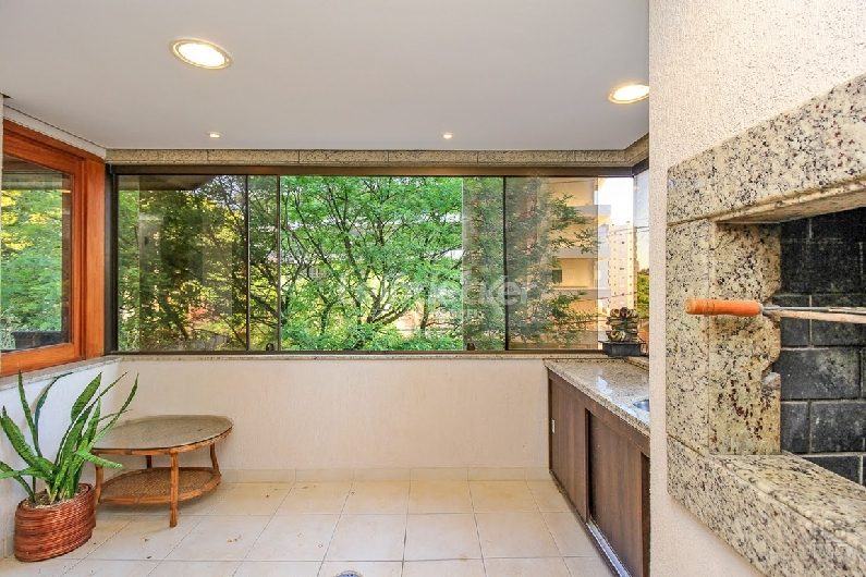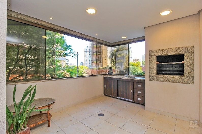 Imóvel semi-mobiliado possuindo 3 suítes (uma com banheira de hidromassagem e closet), living com 3 ambientes com lareira, sacada fechada com churrasqueira, cozinha mobiliada, 5 banheiros, ampla area de serviço, dependecncia de empregada completa e com banheiro privativo, piso porcelanato.