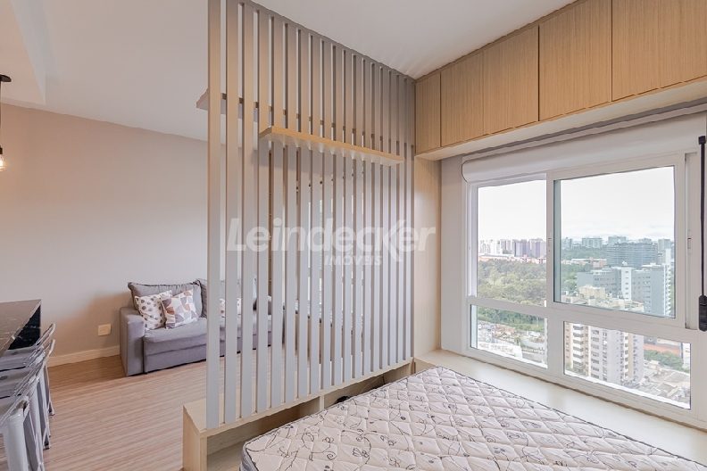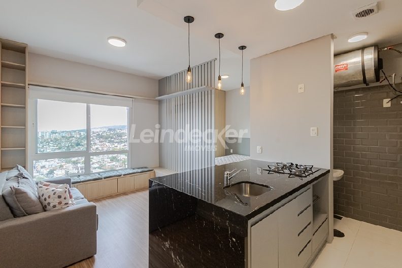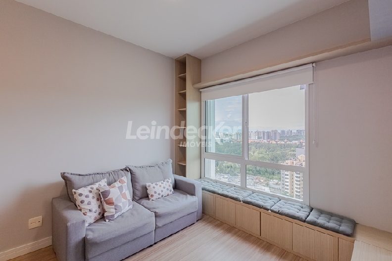 Leindecker Imóveis aluga apartamento mobiliado com 37,05m², localizado no bairro Três Figueiras, frente/lateral. Imóvel com living/dormitório, cozinha com área de serviço, banheiro social e piso laminado. Imóvel com posição solar leste. Possui 01 vaga de garagem coberta e 01 depósito. Condomínio com Infra completa, Piscina Aquecida e piscina externa, sauna, hidromassagem, churrasqueira externa, academia, portaria 24horas, salão de jogos e salão de festas. Localizado próximo à todo o comércio e conveniência da região, a poucos minutos de carro do Shopping Iguatemi, próximo ao colégio Anchieta e Unissinos.