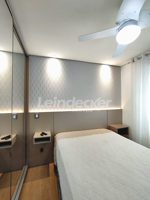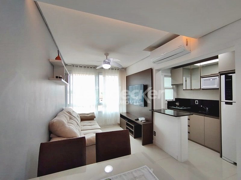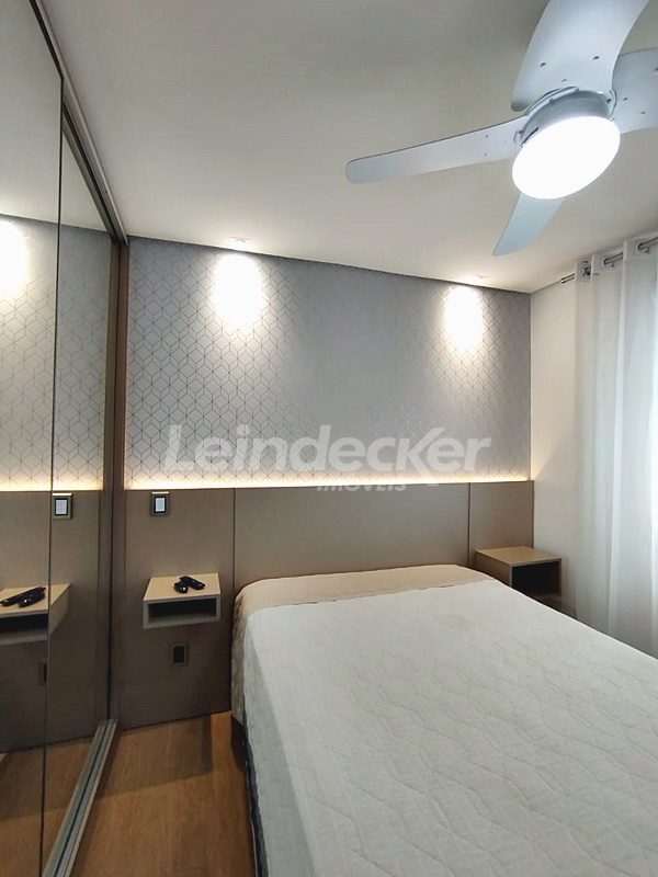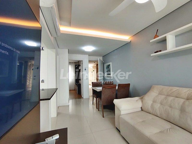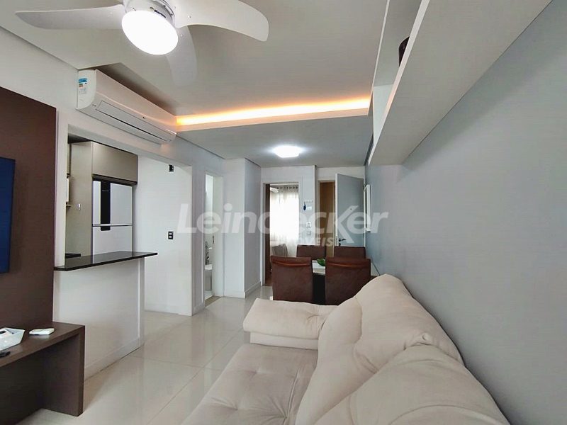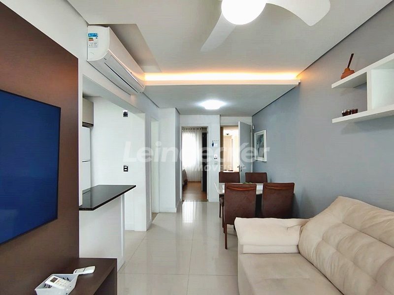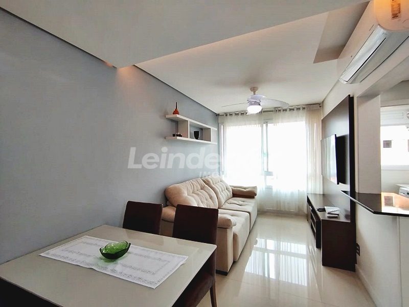 Leindecker Imóveis aluga apartamento totalmente mobiliado com 55m², localizado no bairro Passo D´Areia, frente. Imóvel com 1 dormitório, living em 2 ambientes, sistema de aquecimento dos pisos, 2 ares condiconados, cozinha americana com detalhes em led, churrasqueira, área de serviço, banheiro social e piso porcelanato. Imóvel com posição solar sul/oeste. Possui uma vaga de garagem coberta. Condomínio com portaria 24hs, elevador, academia de ginástica, salão de festas, área externa com bar. Localizado próximo à academia, bar, restaurante, supermercado, agência bancária e escolas.