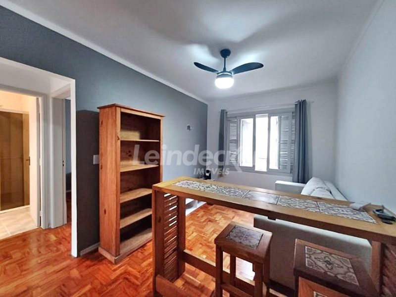 Leindecker Imóveis aluga apartamento com 41m², localizado no bairro Cidade Baixa. Imóvel com 1 dormitório, living, cozinha com área de serviço, banheiro social e piso parquet. Imóvel com posição solar Sul. Condomínio com porteiro eletrônico. Localizado próximo à academia, bar, restaurante, supermercado, agência bancária e escolas. Paradas de ônibus e lotação a poucos metros do imóvel.