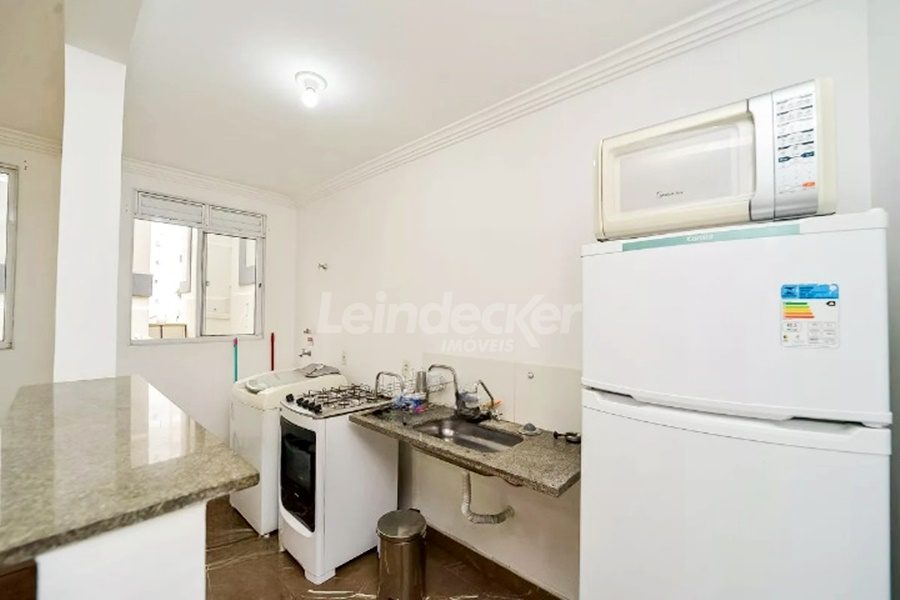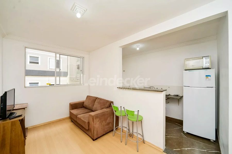 Leindecker Imóveis aluga apartamento com 42m², localizado no bairro Rubem Berta. Imóvel com 02 dormitórios, living, banheiro social, cozinha conjugada com área de serviço, piso frio. Condomínio com salão de festas, churrasqueiras, piscina adulto e infantil, playground, portaria 24 horas. Imóvel com posição solar leste. Próximo à academia, restaurante, supermercado, conveniência e farmácia. Parada de ônibus e lotação à poucos metros.
