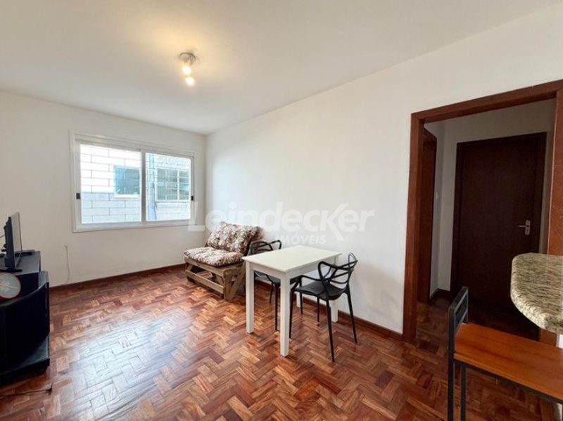 Leindecker Imóveis aluga apartamento com 44m², localizado no bairro Petrópolis, lateral. Imóvel com 1 dormitório, living amplo, cozinha americana, área de serviço com tanque, banheiro social e piso parquet. Imóvel com posição solar leste. Localizado próximo à academia, bar, restaurante, supermercado, agência bancária e escolas. Paradas de ônibus e lotação a poucos metros do imóvel.
