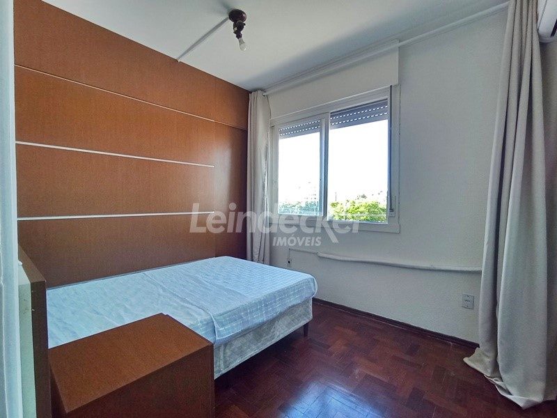 Leindecker Imóveis aluga apartamento com 50m², localizado no bairro Menino Deus, fundos/lateral. Imóvel com 1 dormitório, living, cozinha com armários, banheiro social e piso parquet. Imóvel com posição solar norte. Condomínio com elevador, salão de festas, interfone, porteiro eletrônico, sala de jogos, playground, academia e portão de garagem automático. Localizado próximo á academias, bares, restaurantes, agências bancárias e escolas. Paradas de ônibus e lotação a poucos metros do imóvel.