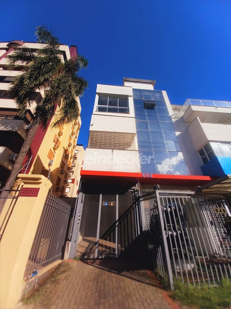 Leindecker Aluga Apartamento 1 Dormitório no Menino Deus. São 43m² , espera para ar-condicionado, espera hidráulica para cozinha, banheiro com box, 3° andar, imóvel de fundos, orientação solar sul, próximo a avenida Getúlio Vargas, 43m². Condomínio com elevador.