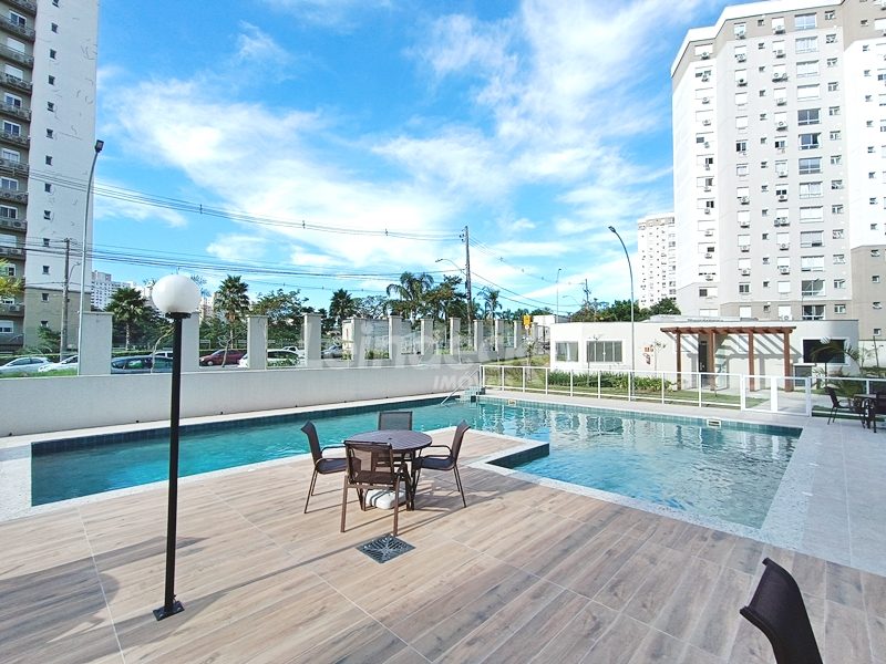 Leindecker Imóveis aluga apartamento com 53 m² localizado no bairro Jardim Carvalho. Imóvel possui 2 dormitórios, sendo 1 suíte, piso laminado, living dois ambientes com sacada com churrasqueira, cozinha americana, área de serviço integrada. Imóvel com posição solar Leste e 2 vagas de garagem individuais e cobertas. O Condomínio possui portaria eletronica, zelador, elevador,área de convivencia, playground, academia, salão de festas, piscina adulto e infantil e quadra esportiva. Localizado próximo à Av Antonio de Carvalho, Av Ipiranga, Av Protasio Alves, supermercados, farmácias e paradas de ônibus a poucos metros do imóvel.