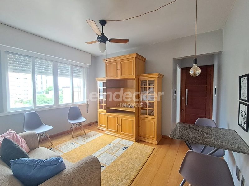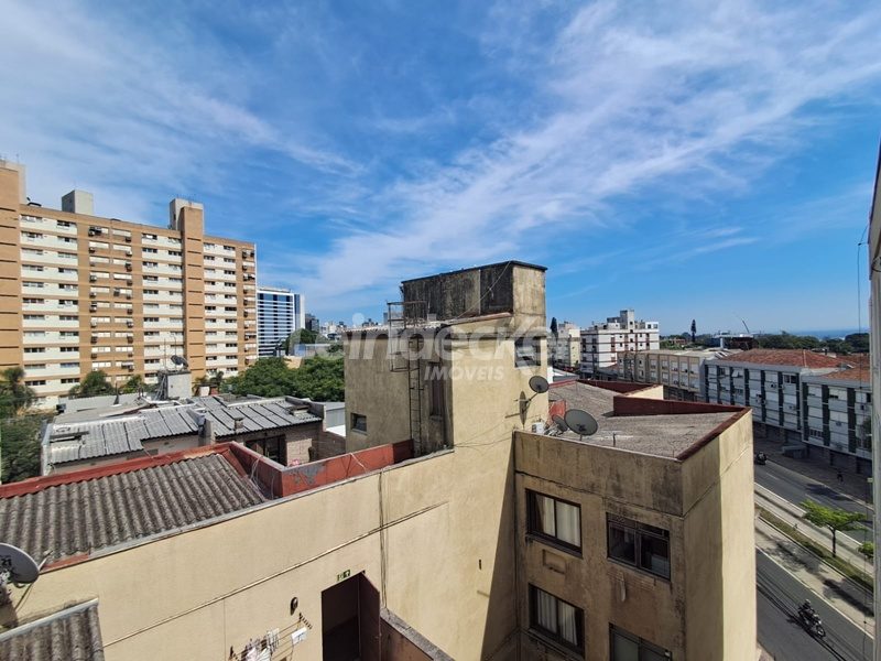 Leindecker imóveis Aluga apartamento de último andar (sétimo andar) com 53,00 m² no bairro Petrópolis, 01 dormitório, posição lateral, sol da tarde e janelas com vista para o horizonte. Apartamento silencioso, não se escuta o tráfego da Protásio Alves.