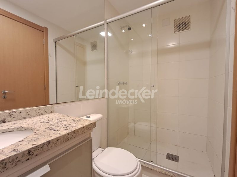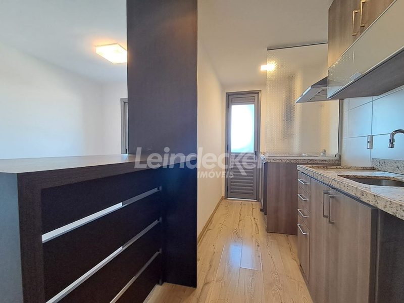 Leindecker Imóveis aluga excelente apartamento com 57m² no bairro Três Figueiras, 1 dormitório com ar condicionado split, andar alto, composto por living 2 ambientes, sacada aberta com churrasqueira, cozinha americana com armários sob medida, área de serviço com tanque, banheiro social com box de vidro temperado, chuveiro por aquecimento a gás, vista belíssima para o bairro. Possui 1 vaga de garagem coberta. Condomínio possui três elevadores, espaço fitness, salão de festas, sala de internet, piscina aquecida, quadra de esportes, playground, porteiro, vídeo-portaria, interfone, zelador, espaço gourmet, lavanderia e sauna. Localizado próximo à Av. Carlos Gomes, Mãe de Deus Center e Unisinos.
