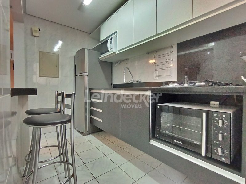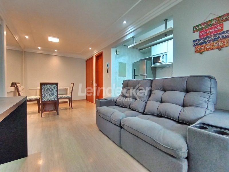 Leindecker Imóveis aluga apartamento com 60m², localizado no bairro Cristal, fundos/lateral. Imóvel semi mobiliado com 2 dormitórios, living grande, ar condicionado, churrasqueira, cozinha com armários, área de serviço, Juncker, banheiro social e piso laminado. Imóvel com posição solar norte. Possui 1 vaga de garagem. Condomínio com elevador, salão de festas, interfone e porteiro eletrônico, piscina e quadra de futebol. Localizado próximo ao Barra Shopping Sul, á academias, restaurantes, agências bancárias e escolas. Paradas de ônibus e lotação a poucos metros do imóvel.