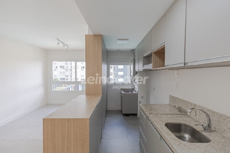 Leindecker Imóveis aluga apartamento com 60m², 2 dormitórios, sendo 1 suíte, living de 2 ambientes, cozinha com bancada americana e churrasqueira, banheiro social, espera para split e piso laminado. Possui 1 vaga de garagem. Condomínio com infraestrutura completa de lazer e segurança. Localizado à poucos metros da PUC.