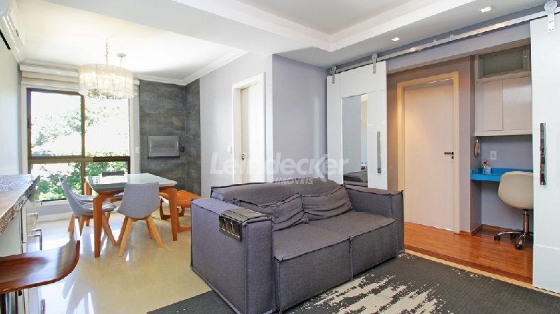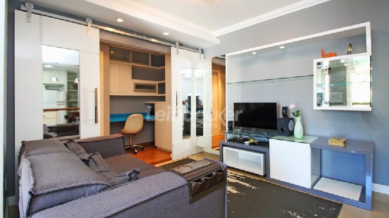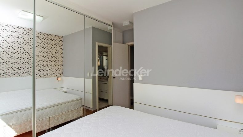 Leindecker Imóveis aluga apartamento mobiliado com 72,00m², localizado no bairro Petrópolis, frente. Imóvel com 2 dormitórios sendo 1 deles suíte, living dois ambientes com ar-condicionado, churrasqueira e escritório, cozinha americana com armários, área de serviços fechada, banheiro social e piso porcelanato. Imóvel com posição solar oeste. Possui 2 vagas de garagem (vaga dupla) e cobertas. Condomínio, elevador, piscina e salão de festas. Localizado próximo à Praça Nações Unidas, R. Barão do Amazonas, R. Ferreira Viana, academia, bar, restaurante, supermercado, agência bancária e escolas. Paradas de ônibus e lotação a poucos metros do imóvel.