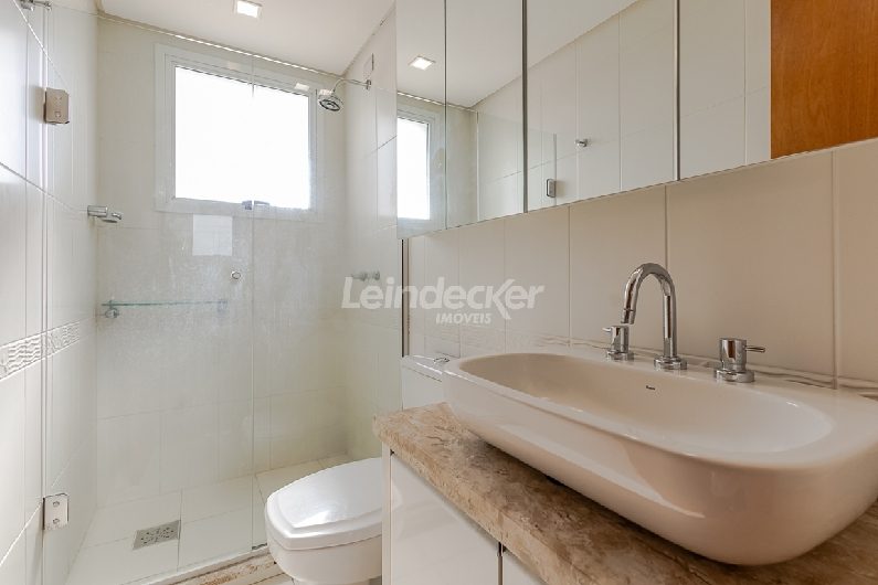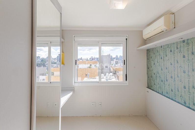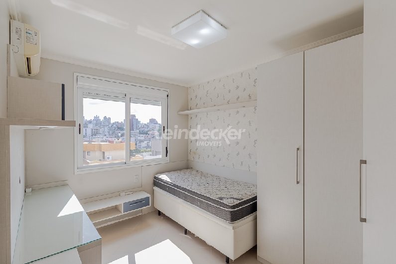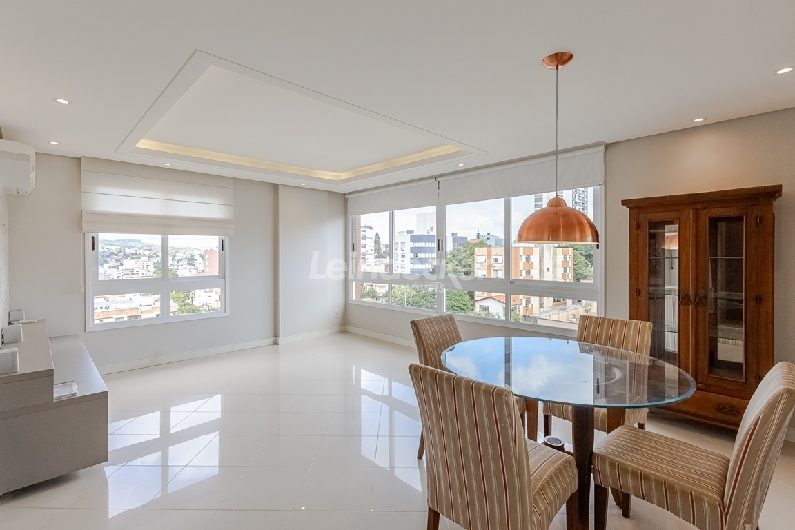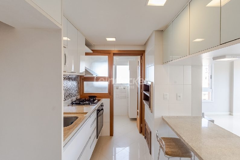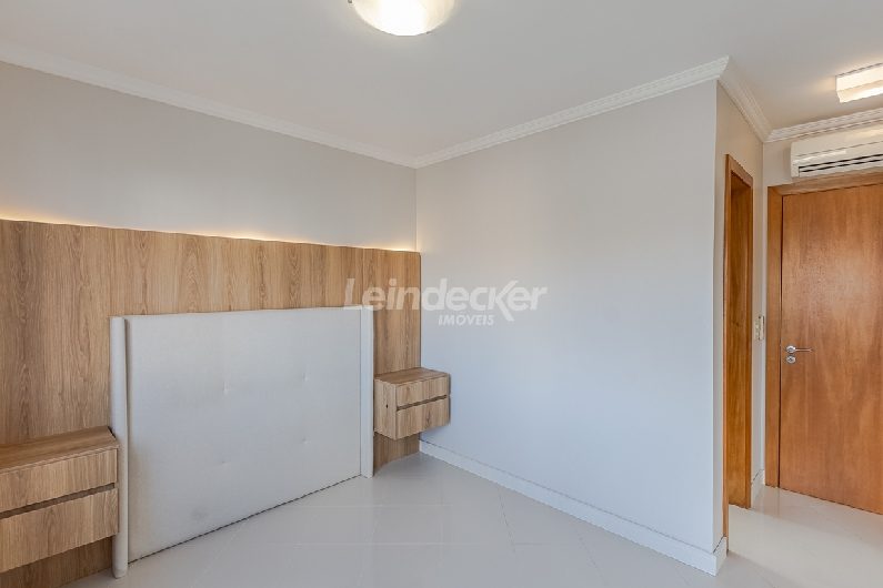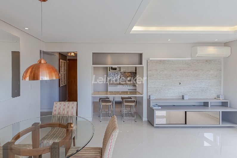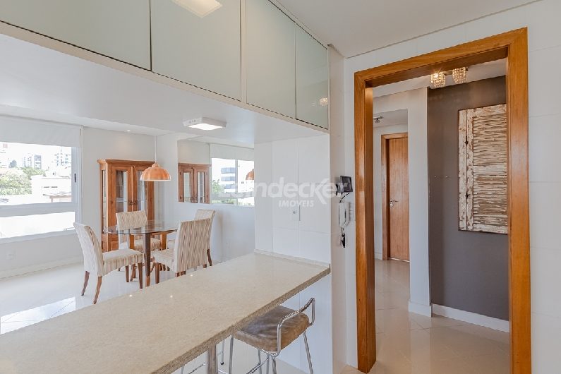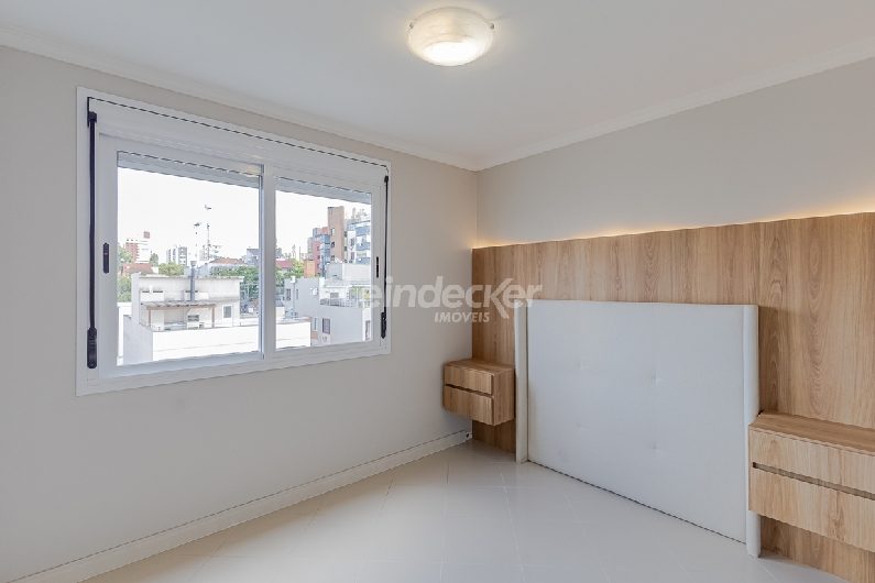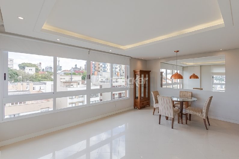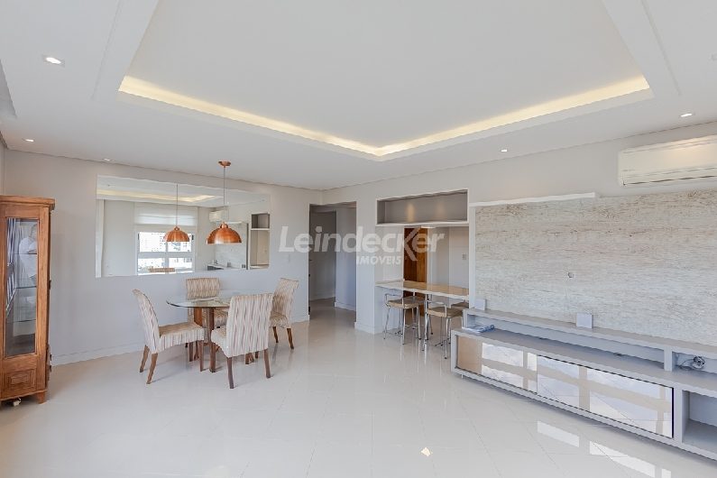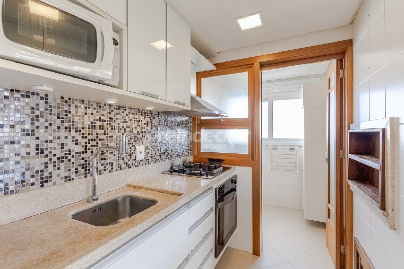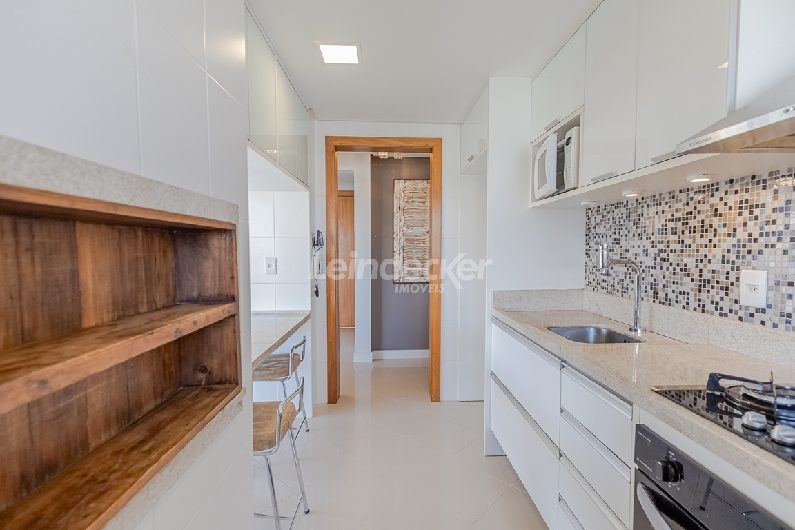 Dispõe de 3 dormitórios, sendo 1 suíte, living dois ambientes integrado com cozinha americana equipada com microondas, cooktop e forno embutido e com churrasqueira.