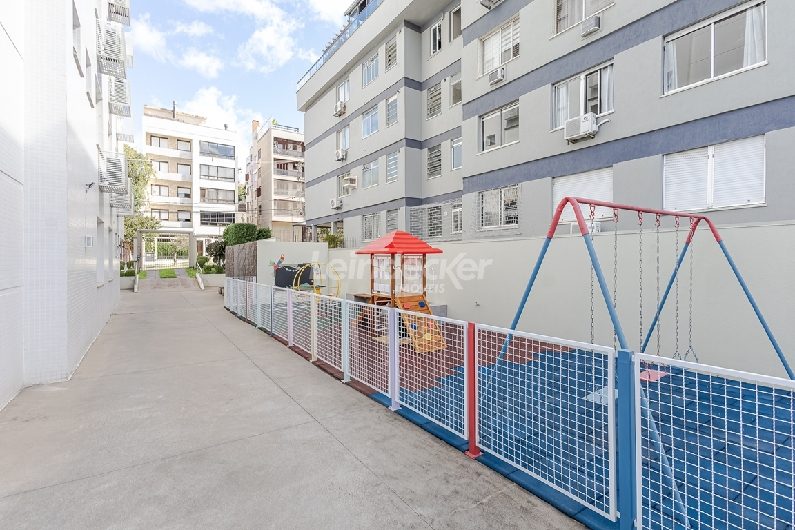 Condomínio com sistema de segurança, playground, elevadores e salão de festas.