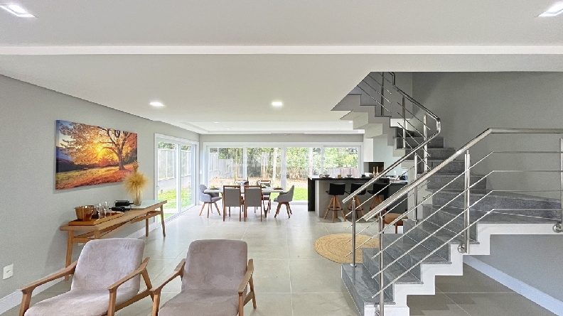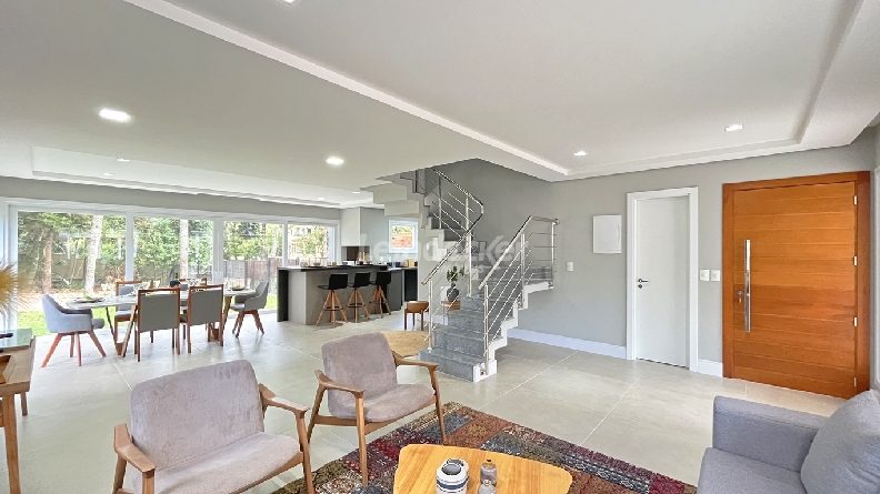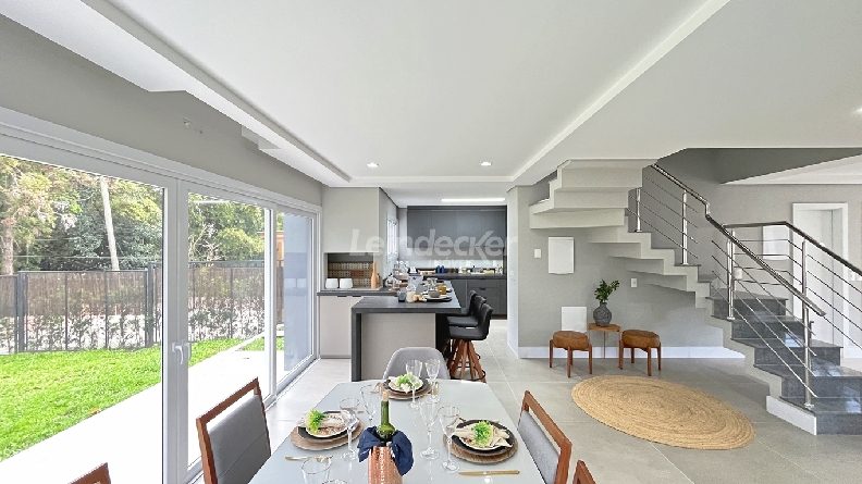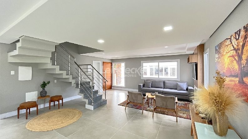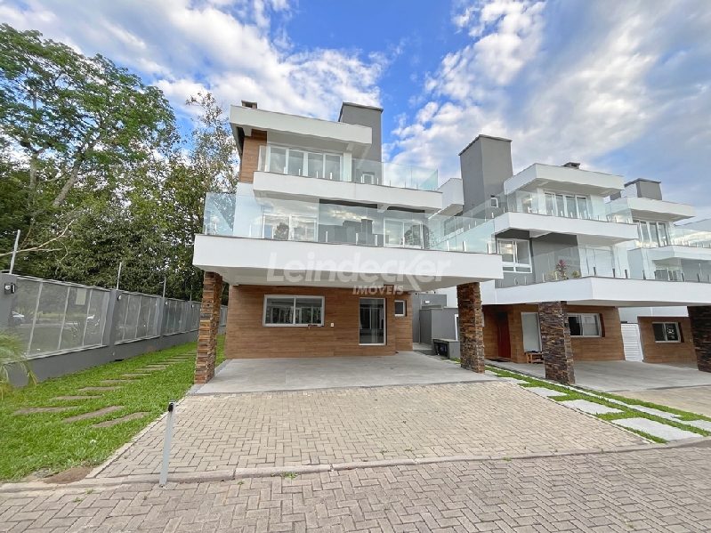 Leindecker Imóveis aluga casa em condomínio fechado com 334 m², localizada no bairro Pedra Redonda. Imóvel com 3 pavimentos, living 3 ambientes com lareira, lavabo, espera para elevador, espaço gourmet com churrasqueira, um lindo garden, cozinha totalmente completa, área de serviço, 3 suítes, sendo 1 master, banheiros com iluminação natural, isolamento acústico, no terraço possui um amplo espaço multiuso para 3 ambientes e banheiro completo e opção para uma 4ª suíte. Posição solar oeste. Possui 3 vagas de box cobertas. Condomínio fechado com acesso privativo para o Guaíba, portaria virtual 24 horas, salão de festas e playground. Localizado próximo a supermercado, posto de saúde, parada de ônibus, escolas e diversas comodidades do bairro.