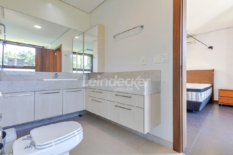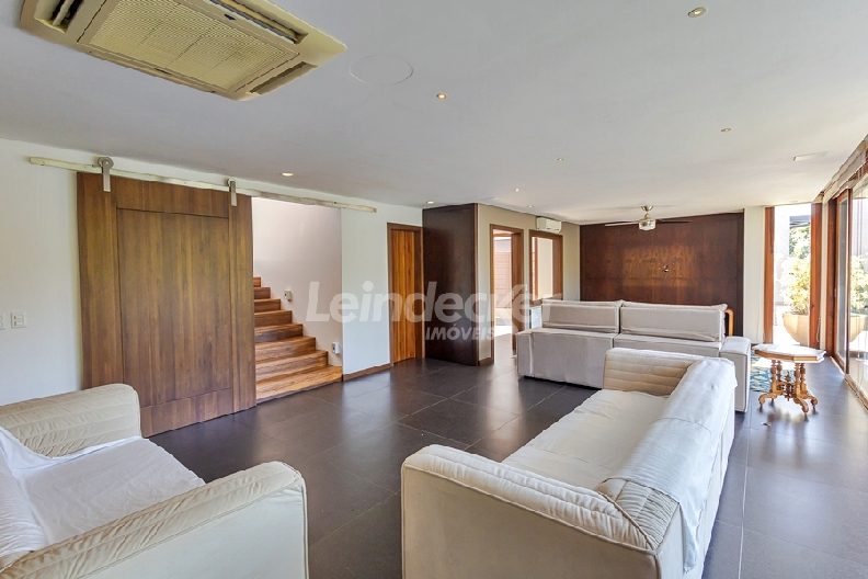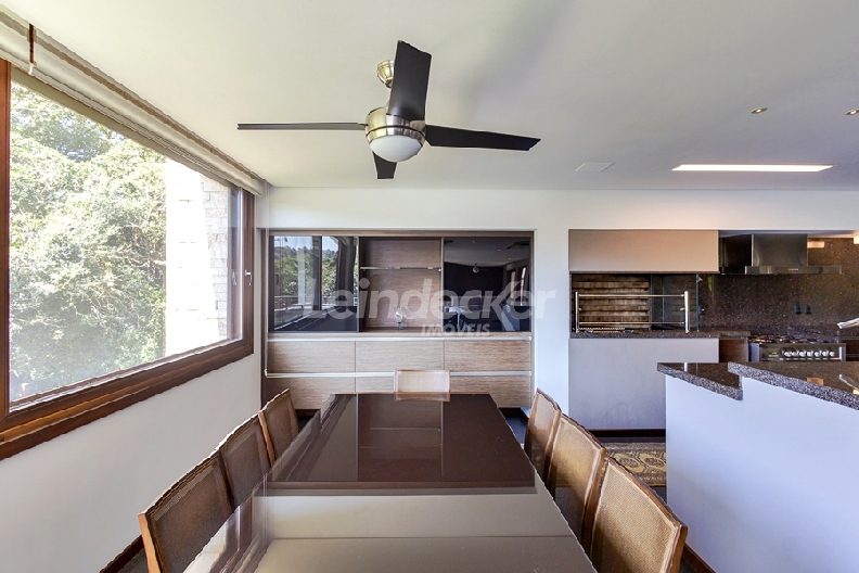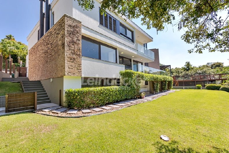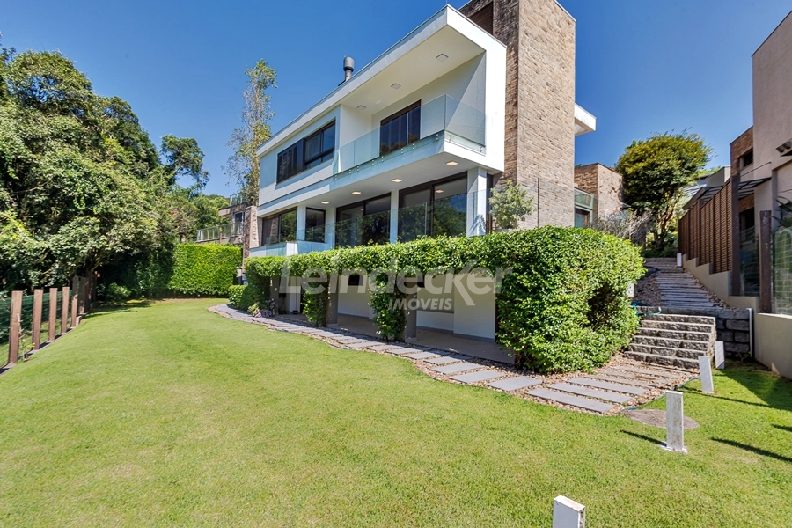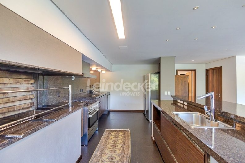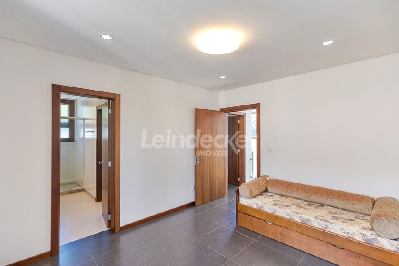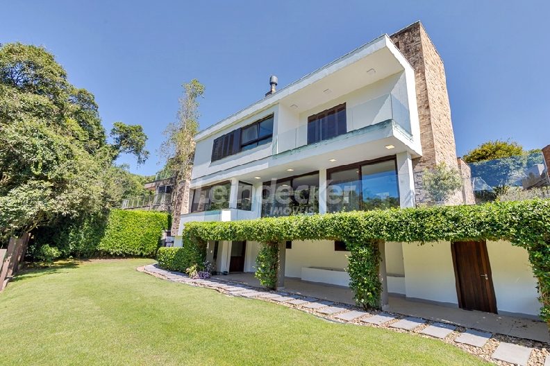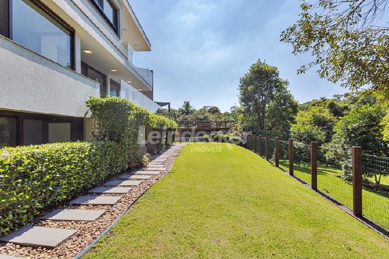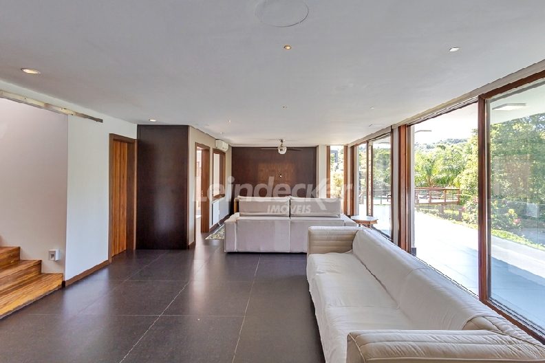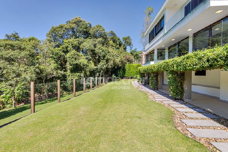 Leindecker Imóveis aluga Casa Residencial mobiliada com 493m² localizada no condominio Reserva do Arvoredo. Imóvel com 4 dormitórios, sendo 4 suítes, 2 delas com closet, sacada e terraço, living integrado com lareira, home theater escritório, ar-condicionado em todos os ambientes, cozinha gourmet com churrasqueira, sala de jantar, piso porcelanato, área de serviço fechada, aquecedores à gás, dependência, pátio, jardim com irrigação e aproveitamento de água da chuva, e garagem para até 4 carros. Condominio privativo com 33 casas, segurança 24 horas, salão de festas, piscina aquecida, piscina externa, academia, quadra esportiva e playground.