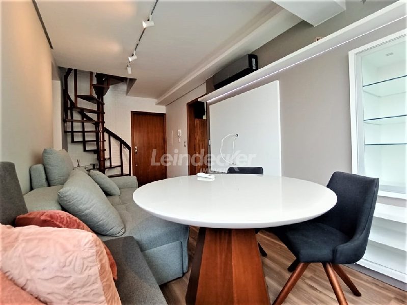 Leindecker Imóveis aluga cobertura mobiliada com 115m², localizada no bairro Petrópolis, fernte. Imóvel com 2 dormitórios, living com sacada em 2 ambientes, cozinha equipada, área de serviço com junker, 2 banheiros sociais, piso laminado, churrasqueira no terraço. Imóvel com posição solar oeste/leste. Possui 2 vagas de garagem cobertas. Localizada próximo à Av. Cristiano Fischer, academia, bar, restaurante, supermercado, agência bancária e escolas. Paradas de ônibus e lotação a poucos metros do imóvel.