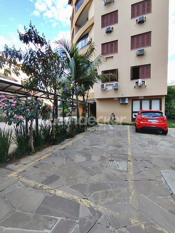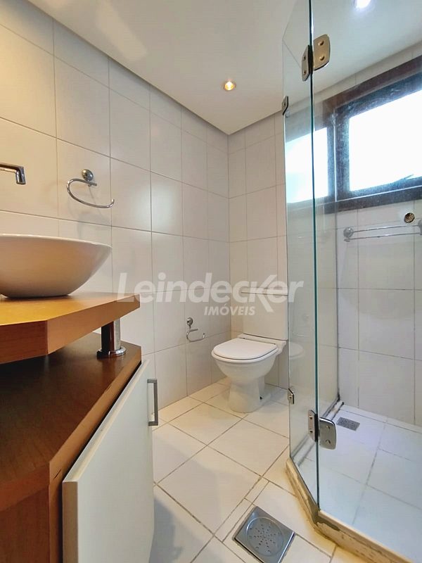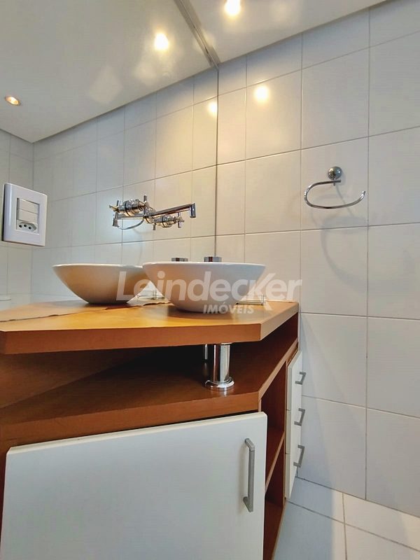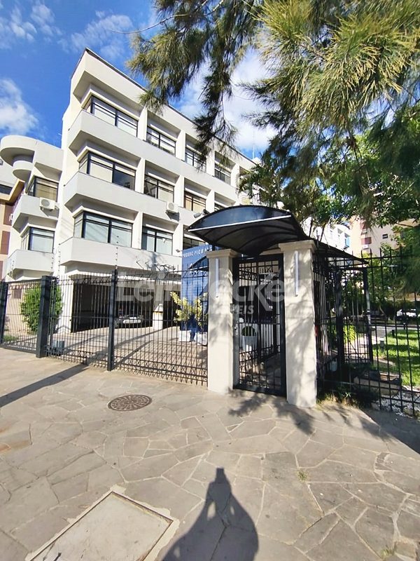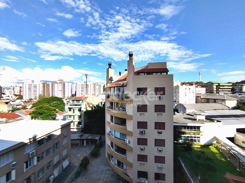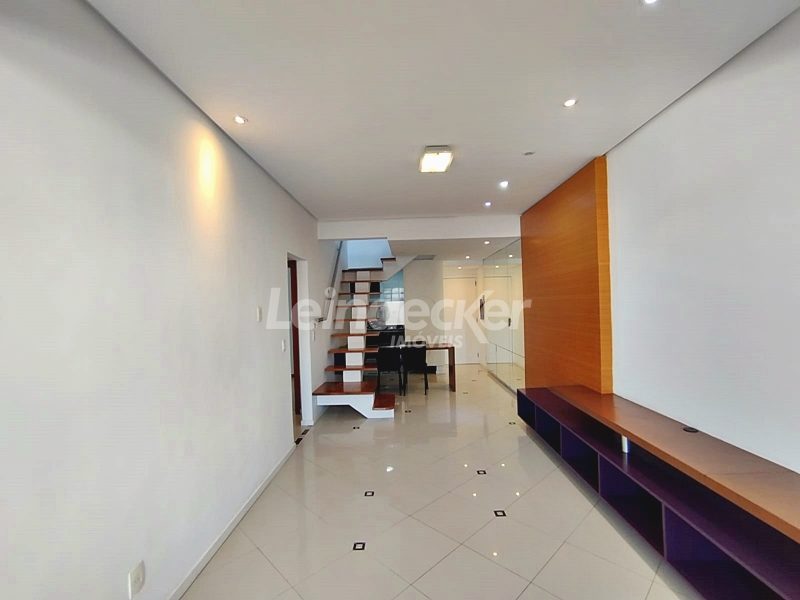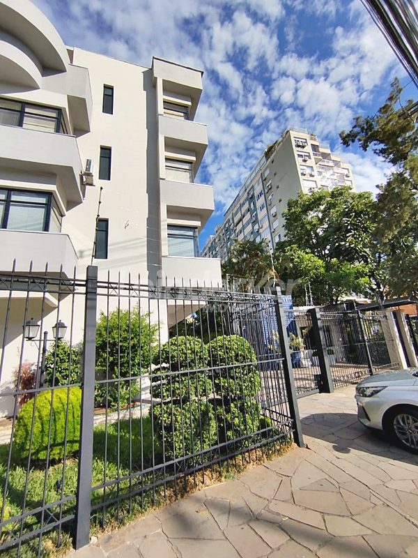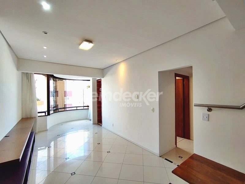 Leindecker Imóveis aluga cobertura semimobiliada com 132m², localizada no bairro Menino Deus, fundos, com vista ampla. Imóvel com 02 dormitórios, amplo living, cozinha com armários, área de serviço, banheiro social, na parte superior amplo living de convivência com churrasqueira, lavabo e terraço aberto com vista, piso laminado nos dois andares. Imóvel com posição solar norte. Possui 02 vagas de garagem descobertas. Localizado em frente à praça da Marinha do Brasil, próximo à academias, bares, restaurantes, supermercados, agências bancárias e escolas. Paradas de ônibus e lotação a poucos metros do imóvel.