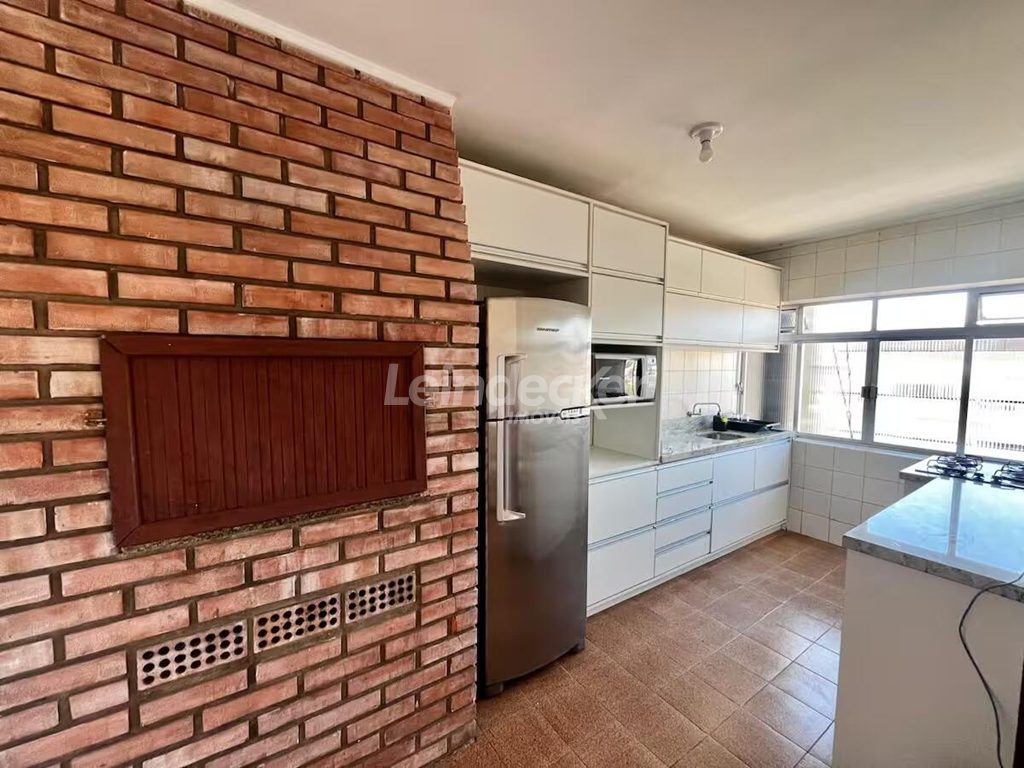 Possui 3 dormitórios (1 suíte), living amplo, cozinha americana com churrasqueira, 2 banheiros, piso laminado, 2 ares-condicionados e sacada num dos dormitórios. Possui dependência de empregada e lavabo.