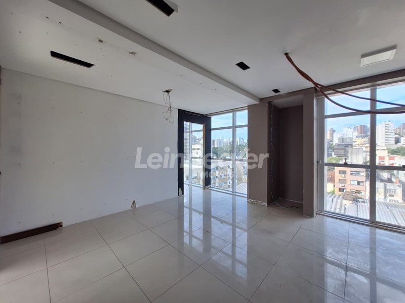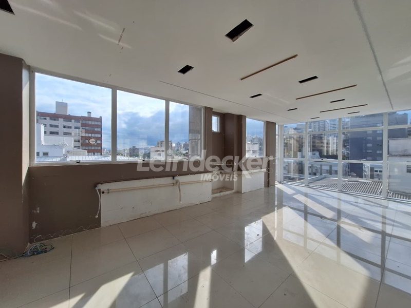 Leindecker Imóveis aluga conjunto comercial com 96m², localizado no bairro Petrópolis, fundos. Imóvel com 2 banheiros, ar condicionado central, espera para copa e piso porcelanato. Imóvel com posição solar oeste/norte. Possui 2 vagas de garagem cobertas. Condomínio com portaria, monitoramento de segurança, elevador, sala de reuniões e gerador próprio para todo o prédio e salas. Localizado próximo a Ijuí, próximo à praça da Encol, à academia, bar, restaurante, supermercado, agência bancária e escolas. Paradas de ônibus e lotação a poucos metros do imóvel.