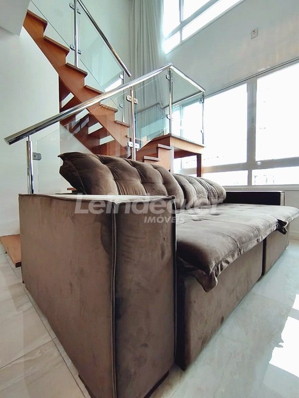 Leindecker Imóveis aluga Duplex mobiliado com 95m², localizado no bairro Passo d´Areia, frente. Imóvel com um dormitório com suite e closet, living dois ambientes, cozinha com churrasqueira, área de serviço, banheiro social e piso porcelanato. Imóvel com posição solar leste. Possui duas vagas de garagem coberta. Condomínio com portaria 24hs, elevador, academia de ginástica, salão de festas. Área externa com bar. Localizado próximo à academia, bar, restaurante, supermercado, agência bancária e escolas.