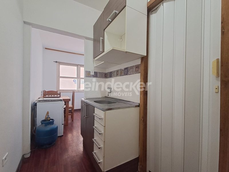 Leindecker Imóveis aluga JK mobiliado com 19,00m², localizado no bairro Centro, fundos. Imóvel com dormitório, cozinha mobiliada, banheiro social, piso parquet. Imóvel com posição solar Oeste. Condomínio com elevador, localizado próximo à academia, bar, restaurante, supermercado, agência bancária e escolas. Paradas de ônibus e lotação a poucos metros do imóvel.