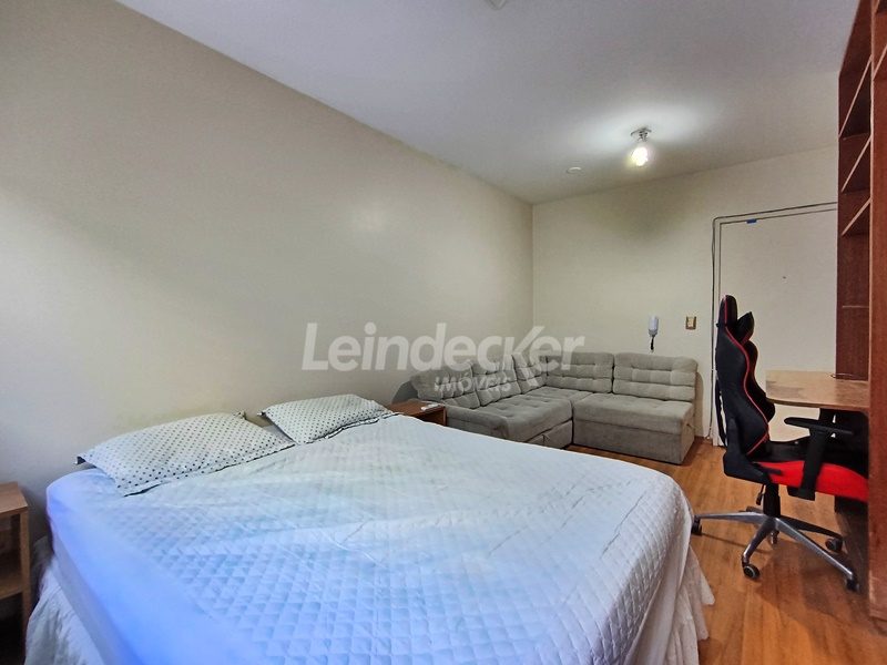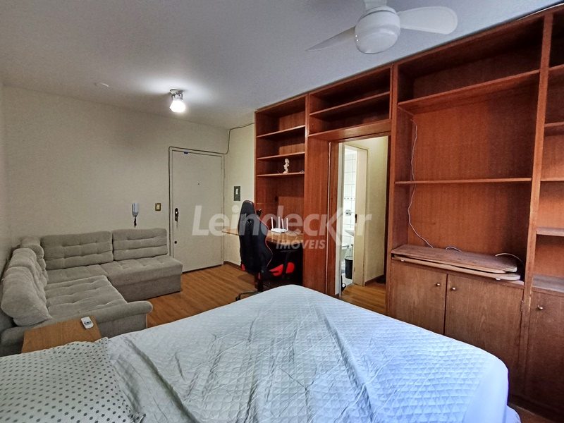 Leindecker Imóveis aluga JK com 46m², localizado no bairro Centro Histórico, lateral. Imóvel mobiliado com cozinha, juncker, área de serviço, banheiro social e piso laminado. Imóvel com posição solar leste. Possui 1 vaga de garagem. Condomínio com portaria 24hs, 2 elevadores, salão de festas com churrasqueira, terraço. Localizado próximo à academia, bar, restaurante, supermercado, agência bancária e escolas.