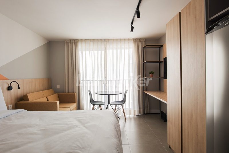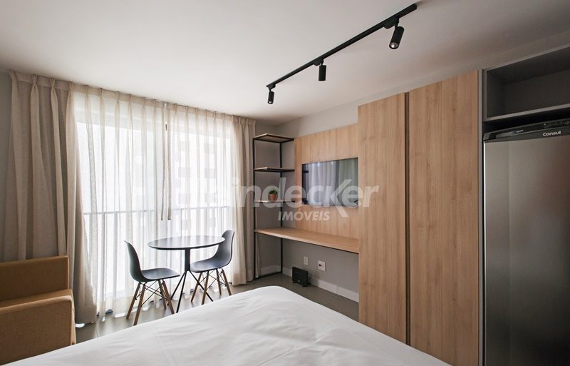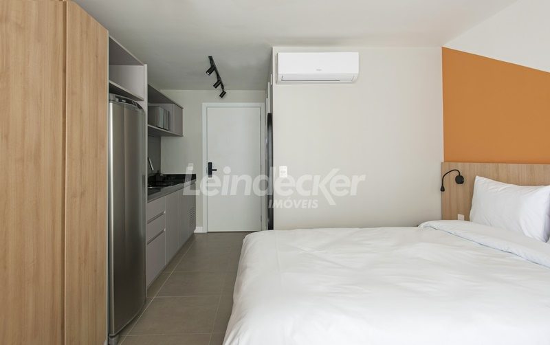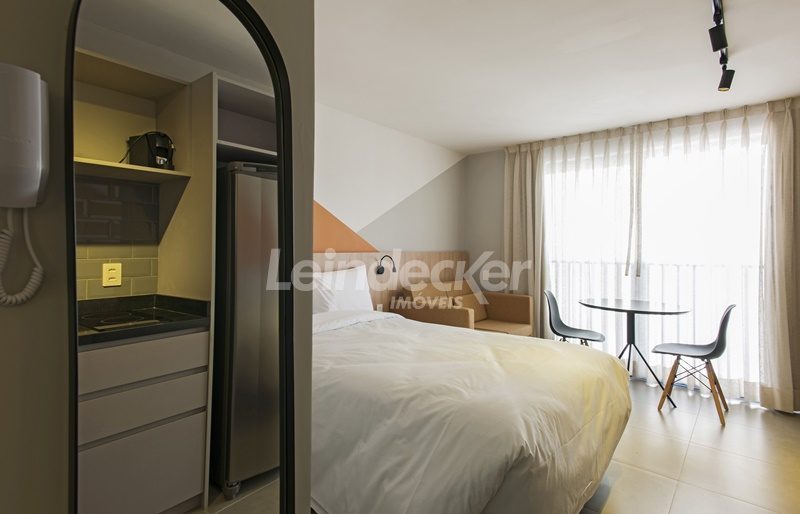 Leindecker Imóveis aluga Loft mobiliado com 24 m², localizado no bairro Auxiliadora, fundos. Imóvel mobiliado, espaços integrados com ar-condicionado, cozinha montada e equipada com eletros e piso frio. Imóvel com posição solar leste. Condomínio com portaria virtual 24hs, elevador, piscina adulto e academia de ginástica, e salão de festas com churrasqueiras. Localizado próximo ao Trend 24 de Outubro, Av Mariland, Tok Stok bares, restaurantes e supermercados. Paradas de ônibus e lotação a poucos metros do imóvel.