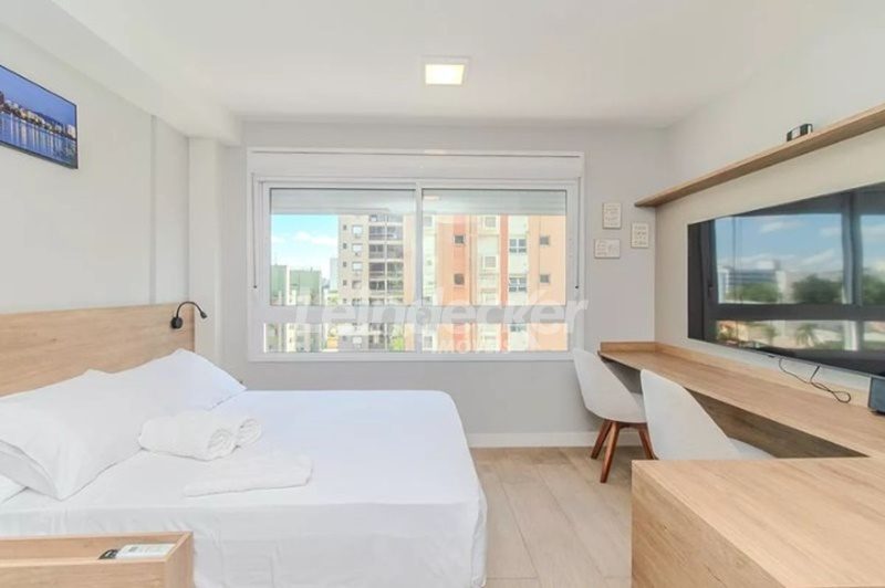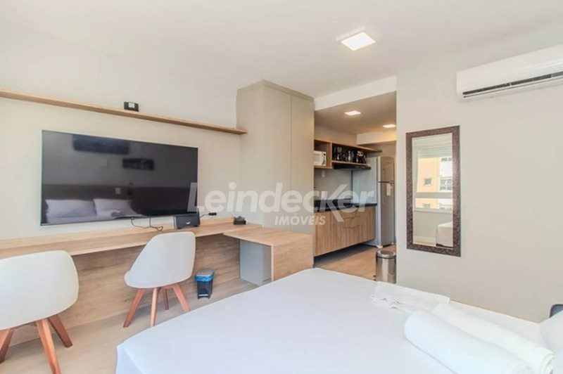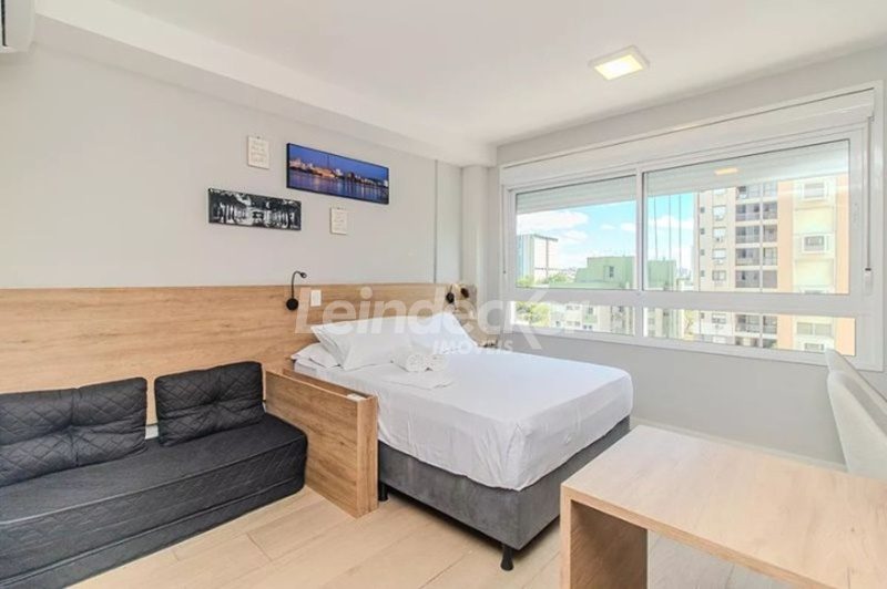 Leindecker Imóveis aluga loft mobiliado com aproximadamente 28m², localizado no bairro Partenon. Imóvel com dormitório integrado com cozinha americana composta por bancada em granito e armário sob-medida, geladeira, micro-ondas e cooktop por indução. Dormitório com cama box, smart tv e ar-condicionado e banheiro social. Imóvel com posição solar leste. Possui 1 vaga de garagem rotativa (sempre há vagas). Condomínio com portaria 24h, elevador, terraço com quiosques com churrasqueira e vista panorâmica, piscina adulto, piscina infantil, academia de ginástica, salão de festas e espaço gourmet. Localizado a poucos metros da Faculdade PUC, ao Hospital São Lucas da PUC, próximo à academia, bar, restaurante, supermercado, agência bancária e escolas.