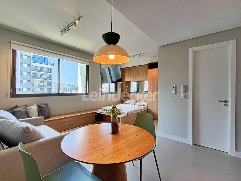 Leindecker Imóveis aluga loft com 30m², localizado no bairro Jardim do Salso, lateral. Imóvel mobiliado com cozinha com armários, ar condicionado, banheiro social e piso porcelanato. Imóvel com posição solar leste. Possui 1 vaga de garagem. Condomínio com bicicletário, Pet Place, Fitness, Fresh Living, Party Room, Pub, Pool, Laundry, Gourmet, Beach Tennis e Market Store. Localizado próximo a PUCRS, a academias, restaurantes, agências bancárias e escolas. Paradas de ônibus e lotação a poucos metros do imóvel.