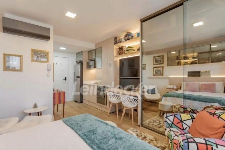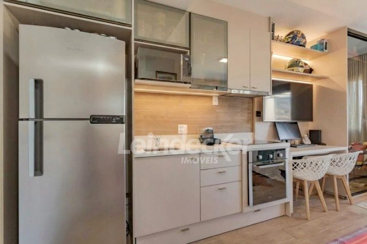 Leindecker Imóveis aluga loft com aproximadamente 30m², localizado no bairro Mont Serrat, frente. Imóvel mobiliado com cozinha equipada, banheiro social e piso laminado. Imóvel com posição solar norte. Possui 1 vaga garagem. Condomínio com portaria 24h, salão de festas, academia, piscina, elevador, lavanderia e interfone. Localizado próximo a academias, restaurantes, supermercados, agências bancárias e escolas. Paradas de ônibus e lotação a poucos metros do imóvel.