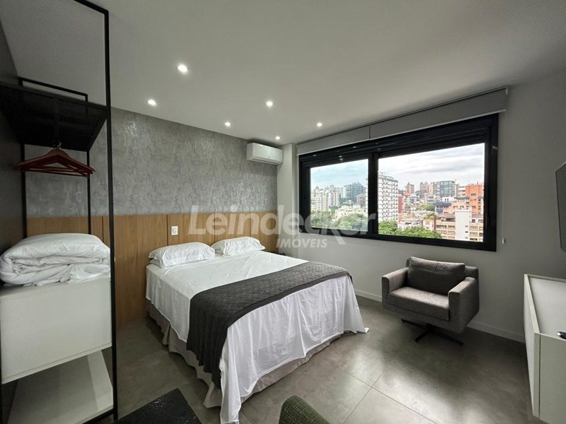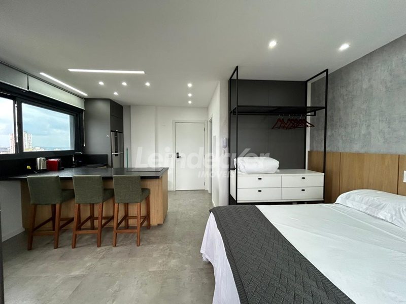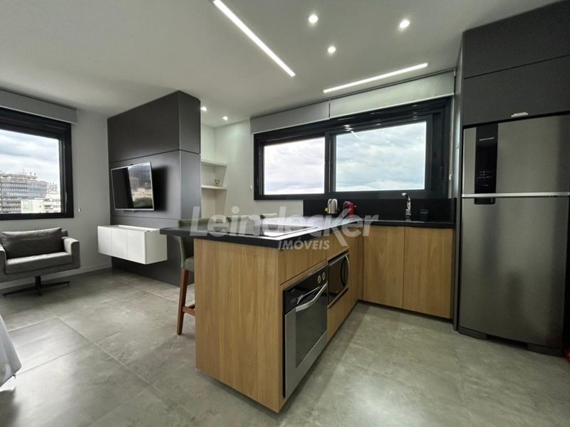 Leindecker Imóveis aluga loft com 33m², localizado no bairro Mont Serrat, frente. Imóvel mobiliado com cozinha equipada, banheiro social e piso laminado. Imóvel com posição solar norte. Possui 1 vaga garagem. Condomínio com portaria 24h, salão de festas, academia, piscina, elevador, lavanderia e interfone. Localizado próximo a academias, restaurantes, supermercados, agências bancárias e escolas. Paradas de ônibus e lotação a poucos metros do imóvel.