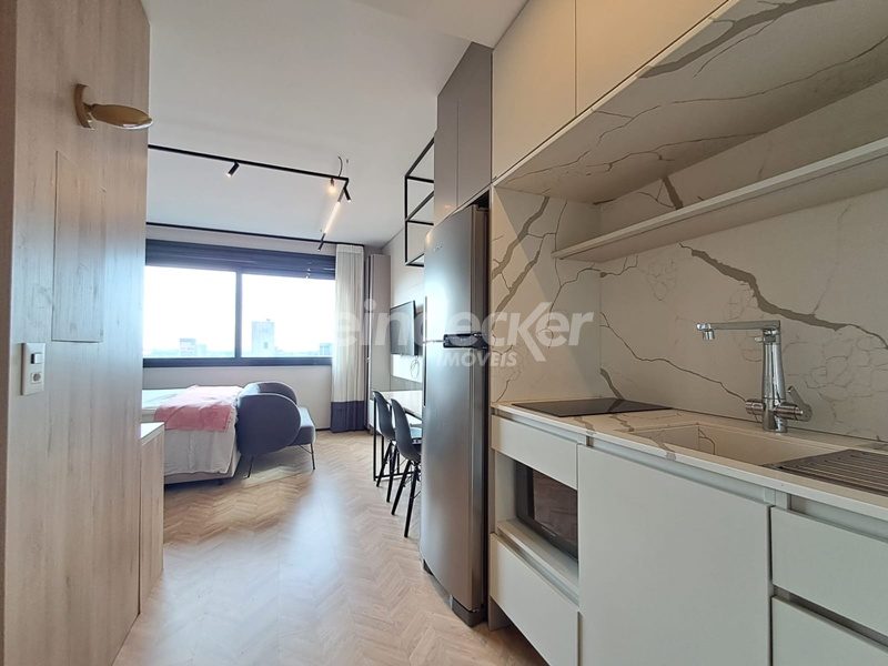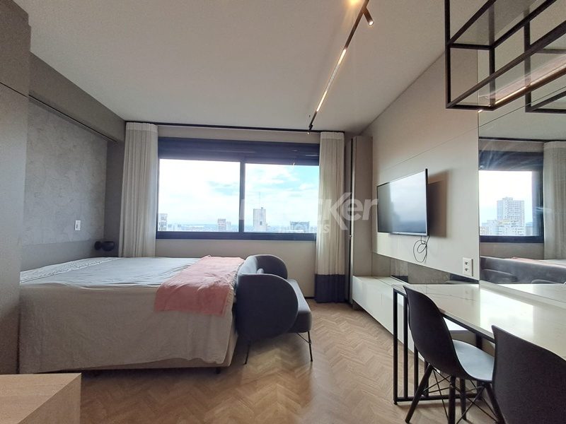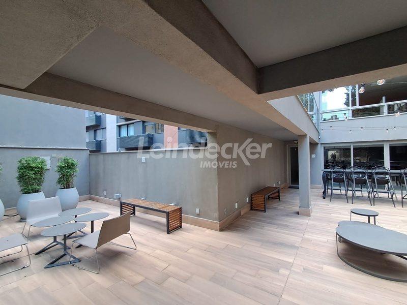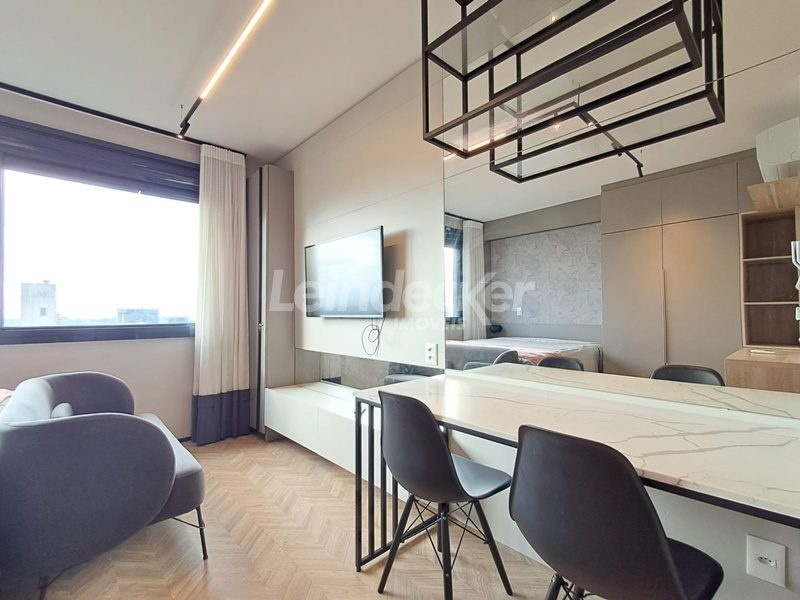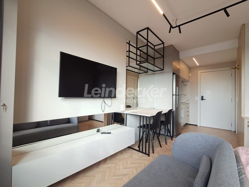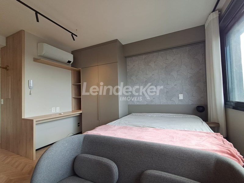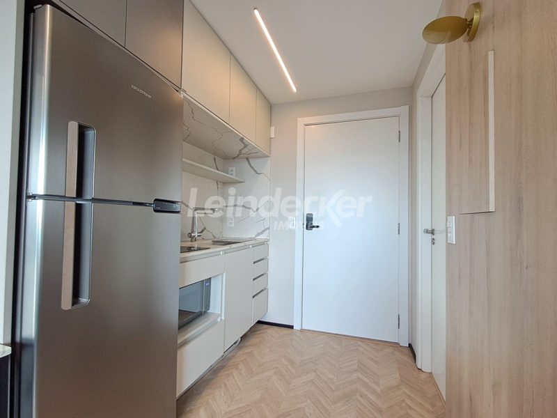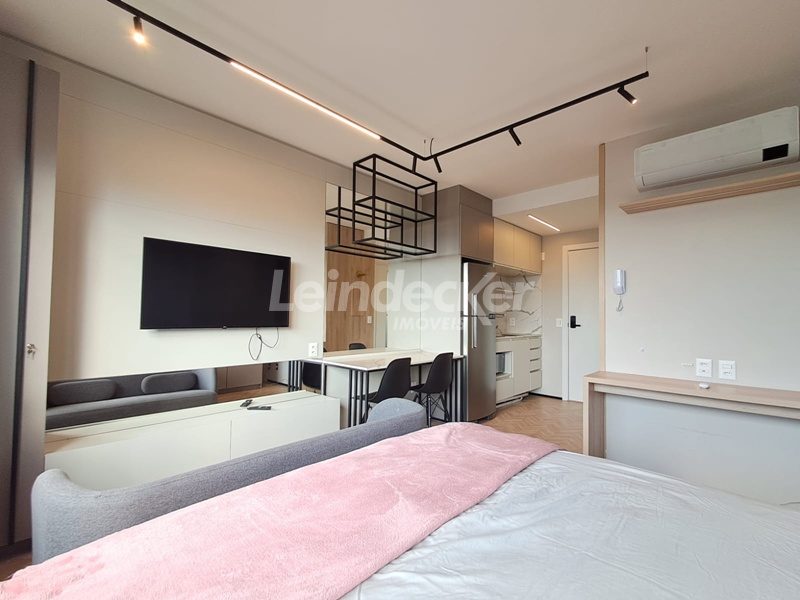 Leindecker Imóveis aluga apartamento loft com aproximadamente 35,00m², localizado no bairro Mont Serrat, frente. Imóvel mobiliado com cozinha equipada, banheiro social e piso laminado. Imóvel com posição solar norte. Possui 1 vaga garagem. Condomínio com portaria 24h, salão de festas, academia, piscina, elevador, lavanderia e interfone. Localizado próximo a academias, restaurantes, supermercados, agências bancárias e escolas. Acesso fácil pelas Av. Lucas de Oliveira e próximo a Rua 24 de Outubro.