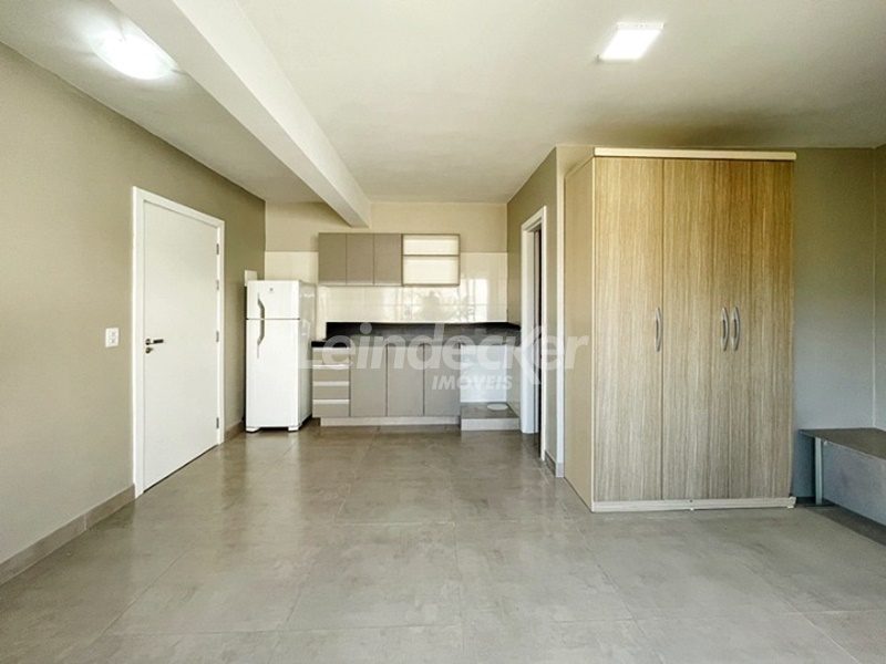Leindecker Imóveis aluga loft semi-mobiliado com 35m², localizado no bairro São Geraldo. Imóvel arejado, piso em porcelanato, cozinha, banheiro social com box vidro e armários.O condomínio possui interfone e espaço para convivência no terraço. Localizado próximo a 1 quadra da Av. Benjamin Constant, à academia, bar, restaurante, supermercado, agência bancária e escolas. Paradas de ônibus e lotação a poucos metros do imóvel..