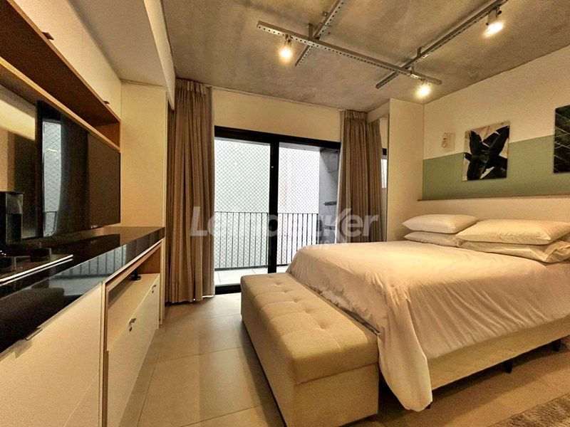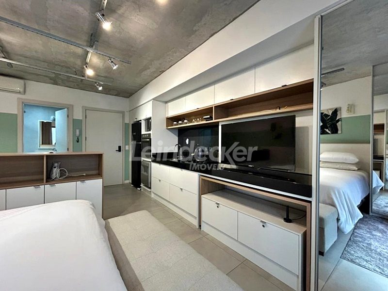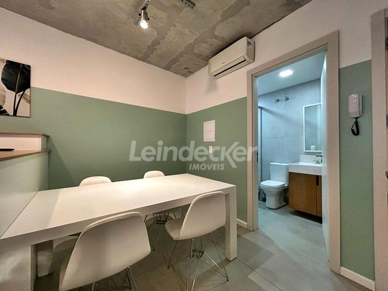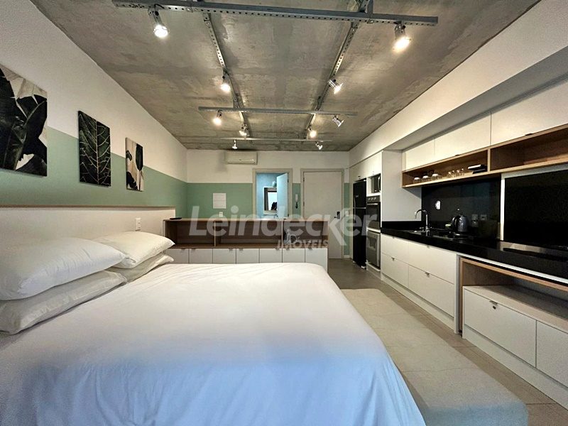Leindecker Imóveis aluga loft com 36m², localizado no bairro Menino Deus, fundos. Imóvel mobiliado com cozinha equipada, sacada, banheiro social e piso frio. Condomínio com portaria digital 24h, salão de festas, elevador, lavanderia e interfone. Localizado próximo a academias, restaurantes, supermercados, agências bancárias e escolas. Paradas de ônibus e lotação a poucos metros do imóvel.