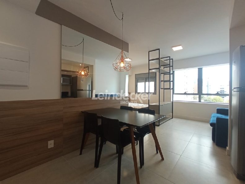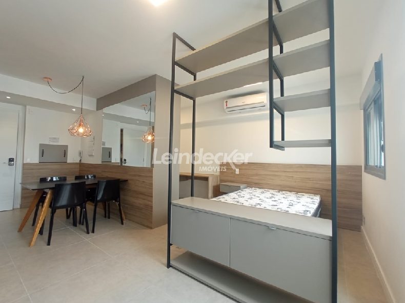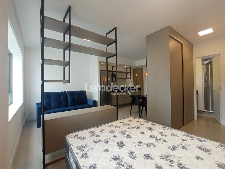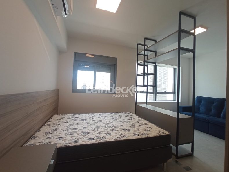 Leindecker Imóveis aluga Loft todo mobiliado com 37m², localizado no bairro Chacara das Pedras, lateral. Imóvel com dormítorio e living integrado, cozinha com churrasqueira, área de serviço, banheiro social e piso frio. Imóvel novo nunca habitado e com mobilia novissima (sofá, mesa com cadeiras e geladeira, alem do que ja tem como cama e fogão). Posição solar norte. Possui uma vaga de garagem coberta. Condomínio com portaria 24hs, elevador, piscina adulto com borda infinita, academia de ginástica, salão de festas e salão Gourmet. Localizado próximo à academia, bar, restaurante, supermercado, agência bancária e escolas.