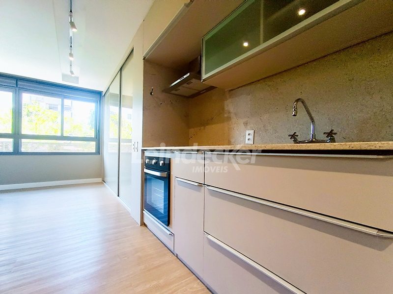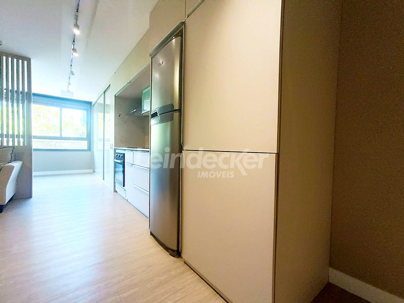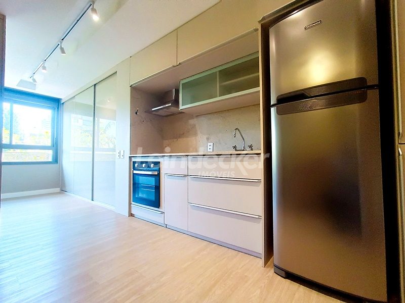 Leindecker Imóveis aluga Loft localizado no bairro Petrópolis. Imóvel adaptado para receber moradores da terceira idade que buscam autonomia, independência e seu próprio lar. Totalmente mobiliado, dormitório com cama, roupeiro e ventilador de teto, divisória para a cozinha, que é equipada com cooktop, exaustor, geladeira e forno, na sala contêm sofá, televisão, ar-condocionado e mesa com cadeiras, e também o banheiro é adaptado. Imóvel com posição solar sul e piso laminado. Condomínio com portaria 24hs, elevadores sendo 1 para maca, banheiros projetados para acessibilidade, serviços hospitalares conveniados, concierge, opções pay-per-use de atividades sociais e de saúde. Infraestrutura com piso táctil e antiderrapante, cftv, fitness center, espaço para confraternização e atividades de lazer, piscina coberta e aquecida, quintal com árvores frutíferas, quiosque com churrasqueira, salão de festas, lobby com biblioteca. Ao lado do Grêmio Náutico União e Praça da Encol, no coração do Bairro Petrópolis.