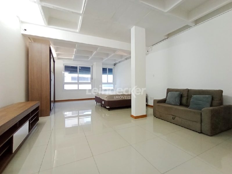 A Leindecker Imóveis aluga excelente Studio mobiliado no Menino Deus, fundos. São 43m² com piso porcelanato, cozinha, banheiro com box, imóvel de fundos, orientação solar sul, próximo a avenida Getúlio Vargas. Condomínio com elevador.