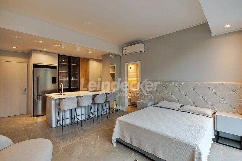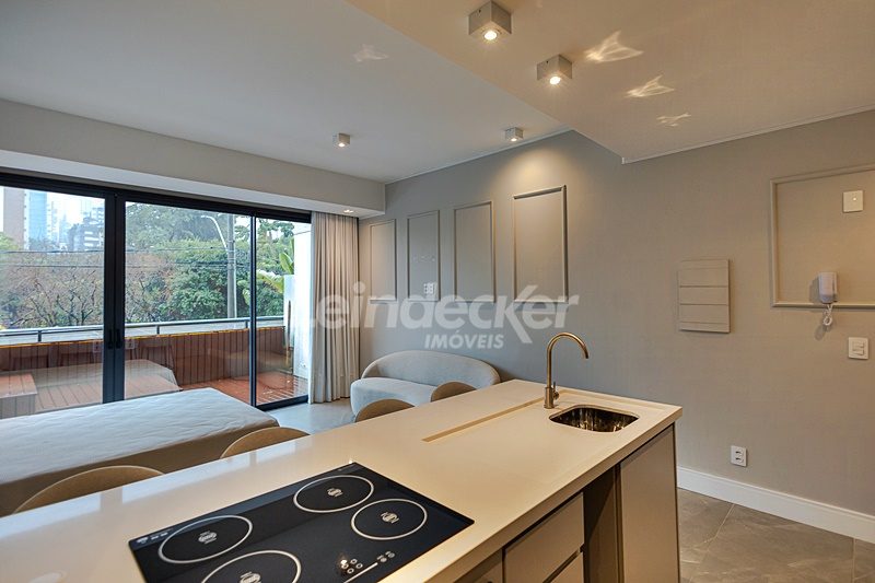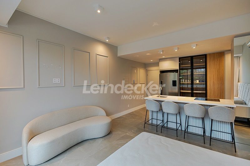 Leindecker Imóveis aluga Loft mobiliado com 56,93, localizado no bairro Petrópolis, frente. Imóvel com cozinha, com cooktop por indução, geladeira, micro-ondas e forno. Possui banheiro social e piso porcelanato. Imóvel com posição solar leste. Possui 1 vaga de garagem coberta. Condomínio com portaria virtual, elevador, salão de festas, espaço gourmet e bicicletário. A localização é excelente, próximo a Nilópolis, Praça da Encol e a comodidades do bairro academias, bares, restaurantes, supermercados, agências bancárias e escolas