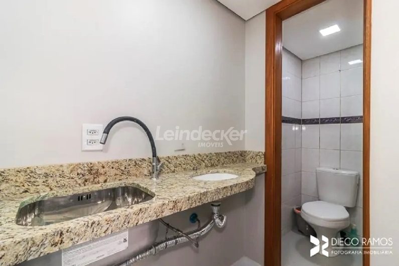 A loja possui piso porcelanato, copa e banheiro social.