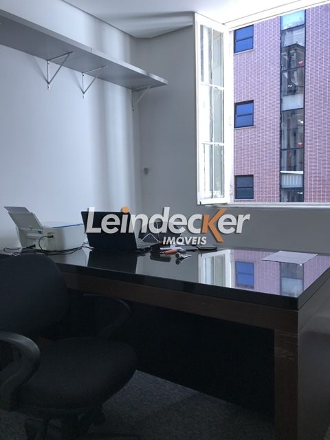 Leindecker Imóveis aluga sala com 110m², localizada no Centro, frente. Imóvel com recepção, 5 salas, copa e banheiro social.. Imóvel com posição solar oeste. Condomínio com portaria 12h e elevador. Localizado próximo à academia, bar, restaurante, supermercado, agência bancária e escolas. Paradas de ônibus e lotação a poucos metros do imóvel.