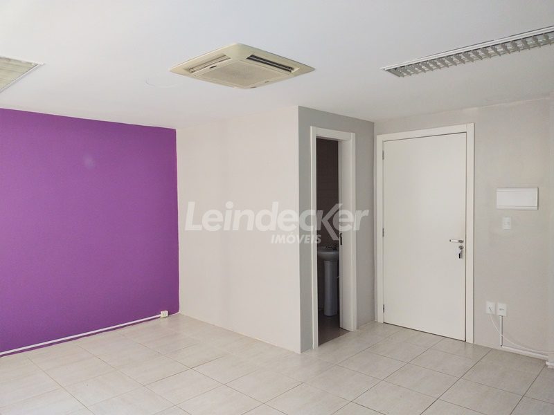 Leindecker Imóveis aluga sala comercial com 25,25m², no bairro São Geraldo, lateral. Imóvel possui ar-condicionado, cortinas, janelas amplas, iluminação e 1 banheiro. Orientação solar Oeste. Condomínio possui portaria e elevador. Localizado em rua há 50 metros da Av. Farrapos, com fácil acesso ao Centro de Porto Alegre. Paradas de ônibus e lotação a poucas quadras do imóvel.