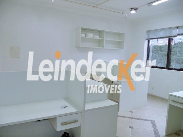 Leindecker Imóveis aluga sala comercial com lavabo e 1 Vaga de garagem. Condomínio com elevador e portaria. Localizado próximo ao Bourbon da Carlos Gomes.