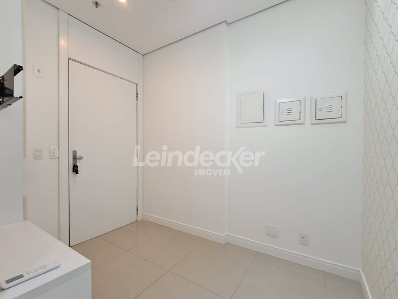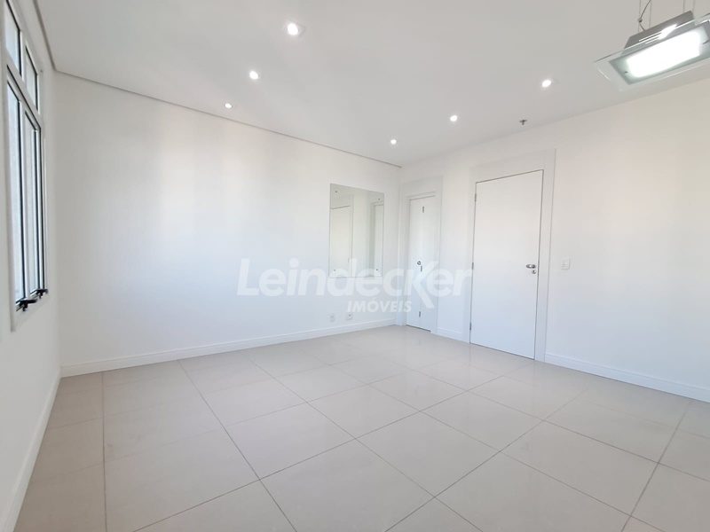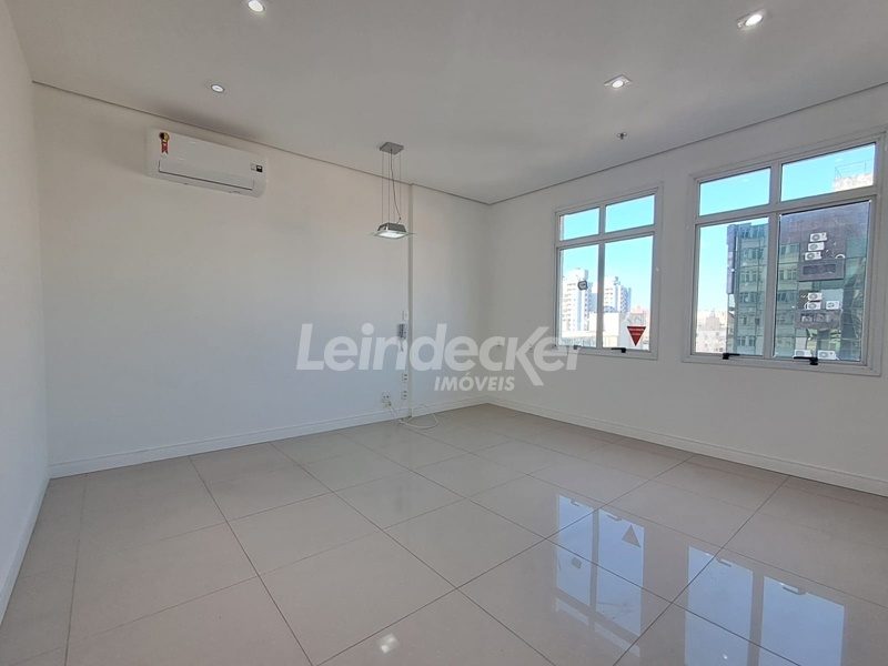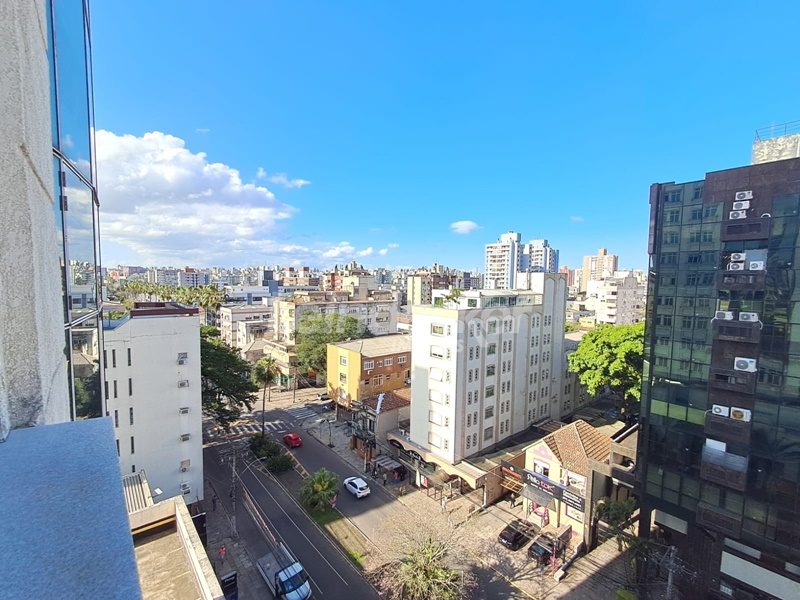 Leindecker imóveis aluga sala comercial, de frente, andar alto, arejada, ensolarada, pisos de porcelanato e um lavabo. Sala Ampla dividida em duas perfazendo uma recepção. Possui um Ar Coondicionado Split, possui uma vaga de garagem. Condomínio com portaria, porteiro eletronico e elevador. Fácil acesso, próximo a todo o comércio da região, Shopping Praia de Belas e Zaffari Menino Deus. Transporte público na frente do imóvel.