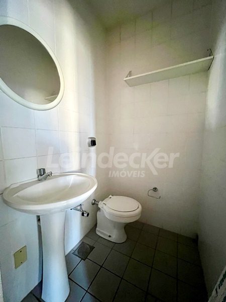 Leindecker Imóveis Aluga sala no Bairro Higienópolis, banheiro social. Condomínio com portaria 24H, acesso por catraca e 2 elevadores. Localizado próximo patricamente de esquina com a Av Cristovão Colombo.