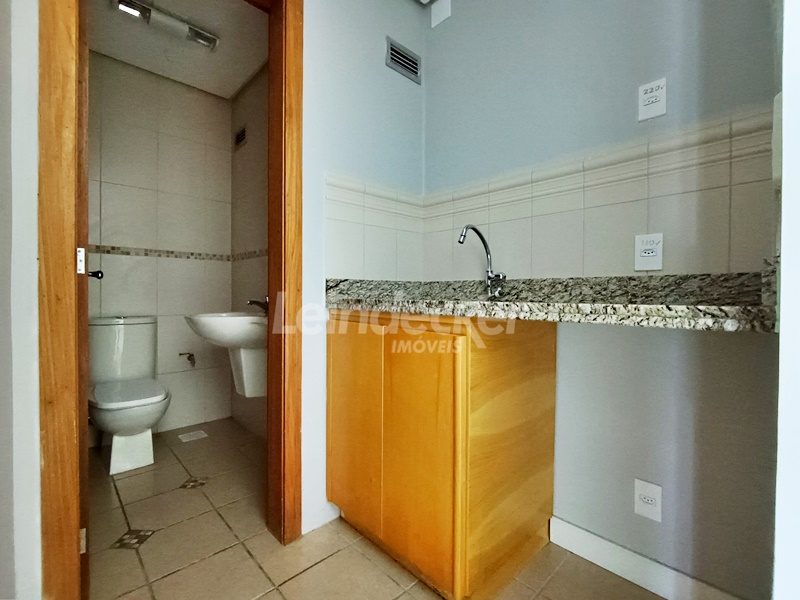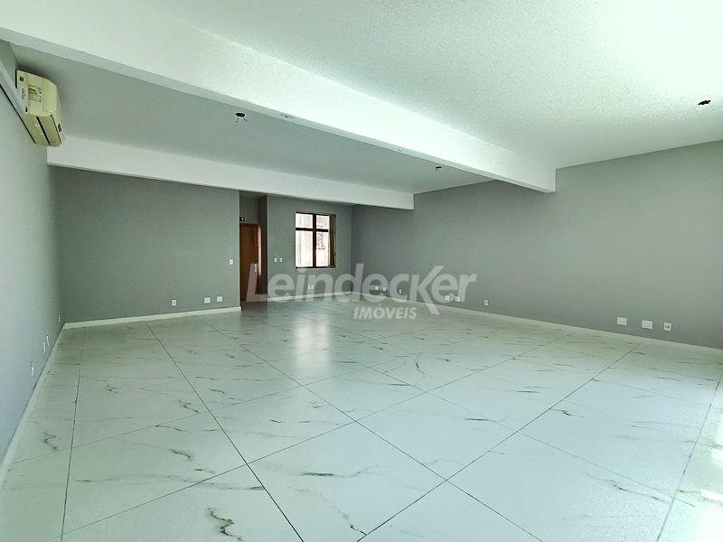 Leindecker Imóveis aluga sala comercial com 80m², localizado no bairro Rio Branco, fundos. Imóvel com ar condicionado, banheiro social e piso porcelanato. Imóvel com posição solar leste. Possui 1 vaga de garagem. Condomínio com elevador, interfone e portaria. Localizado próximo a academias, bares, restaurantes, agências bancárias e escolas. Paradas de ônibus e lotação a poucos metros do imóvel.