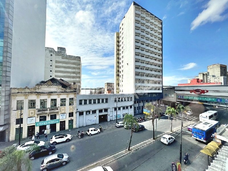 Leindecker Imóveis aluga Sala no Centro Histórico. São 84m², sala ampla com sol da tarde, frente, banheiro e andar alto. Condomínio com portaria e elevadores. Ótima localização entre o Mercado Público e o Pop Center. Fácil acesso via transporte público.