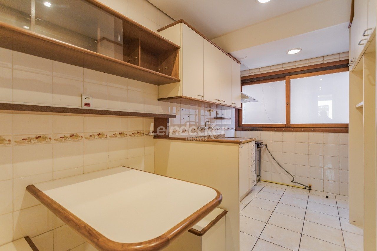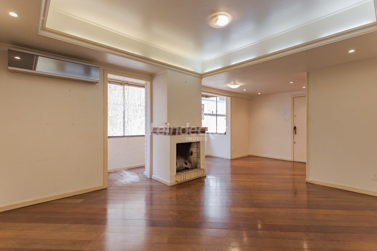 Apartamento com 3 dormitórios; sendo 1 suíte com sacada, living com 3 ambientes com sacada integrada e lareira; escritório(opção de 4º dormitório); lavabo; banho social, copa/cozinha; área de serviço e banheiro auxiliar. Banheiros com aquecimento a gás e ventilação natural. Conta com 2 vagas de garagem e depósito. Fica no 2º pavimento, de fundos, silencioso.