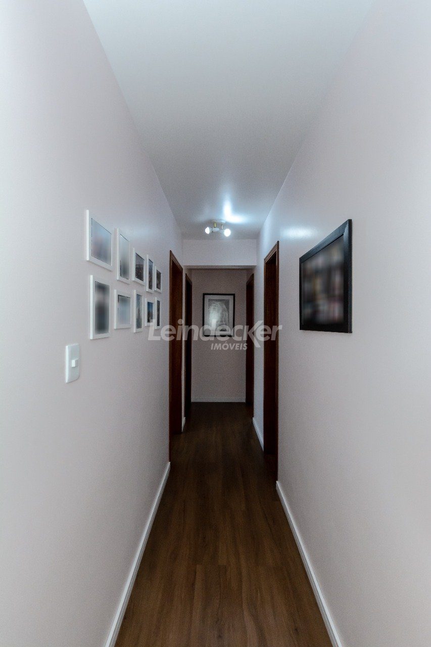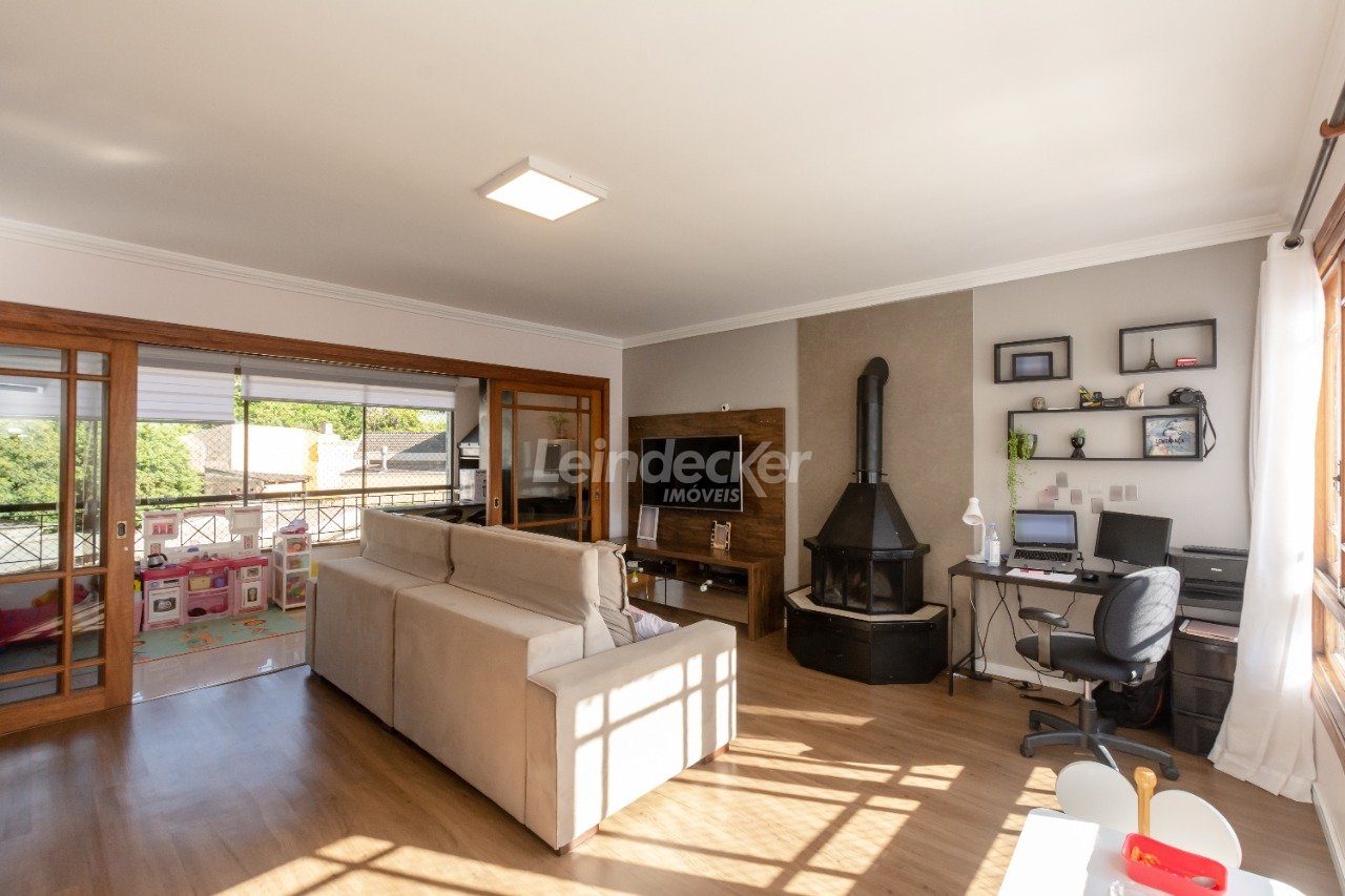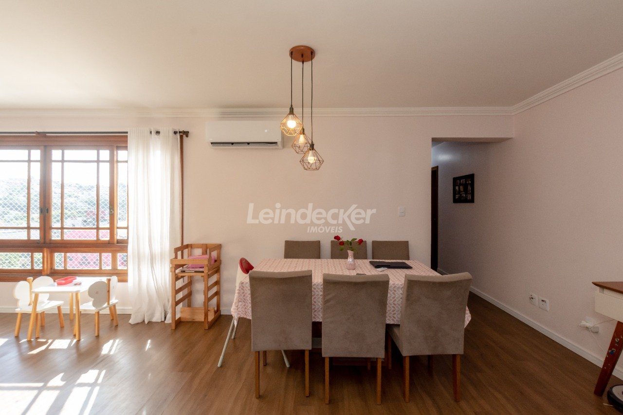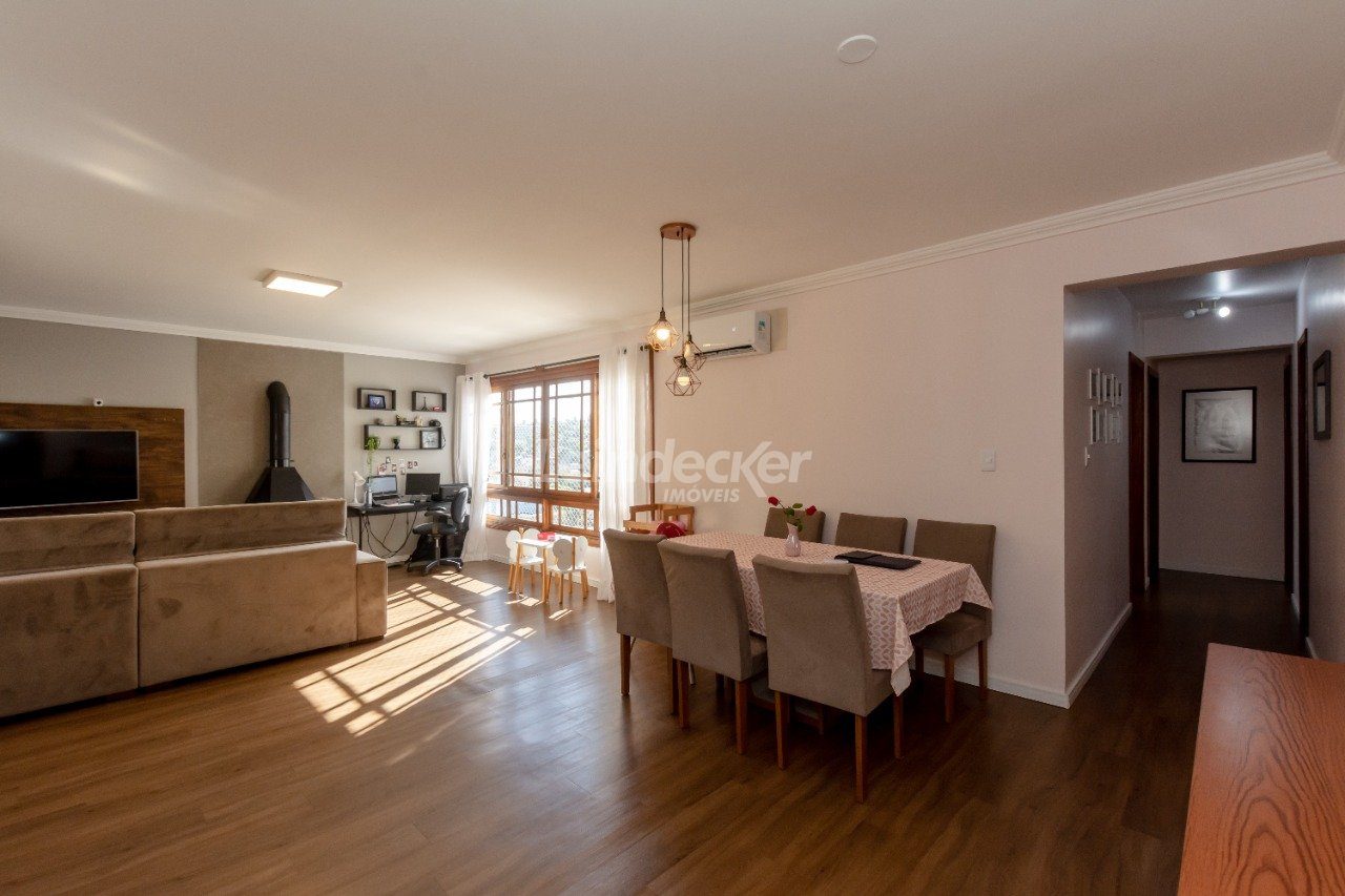 Apartamento com 3 dormitórios, sendo 1 suíte; living 2 ambientes com lareira, sacada com churrasqueira e espaço gourmet, cozinha planejada, área de serviço, piso vinilíco, aquecimento a gás. Apartamento de andar inteiro, com ótima incidência solar e privacidade, fica no 4ª pavimento (três lances de escada). Conta com duas vagas de garagem escrituras e cobertas, lado a lado.