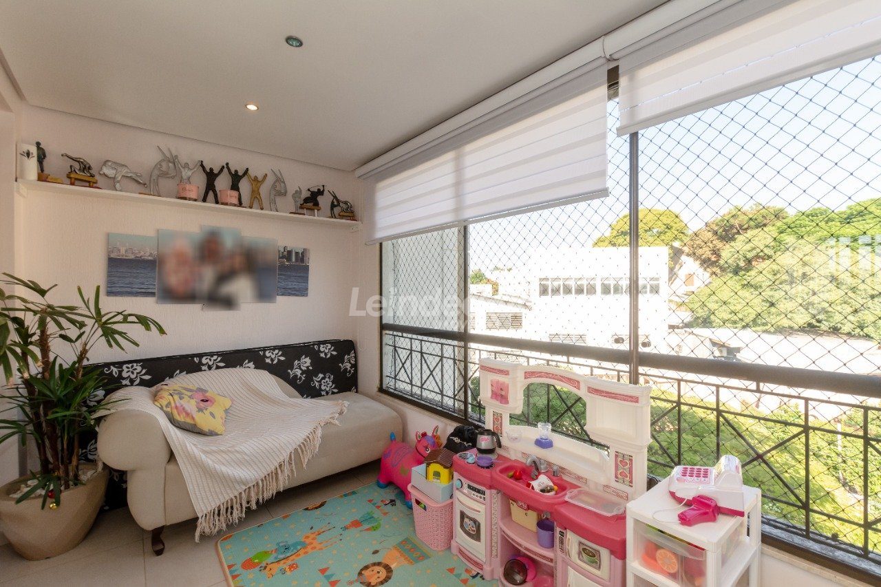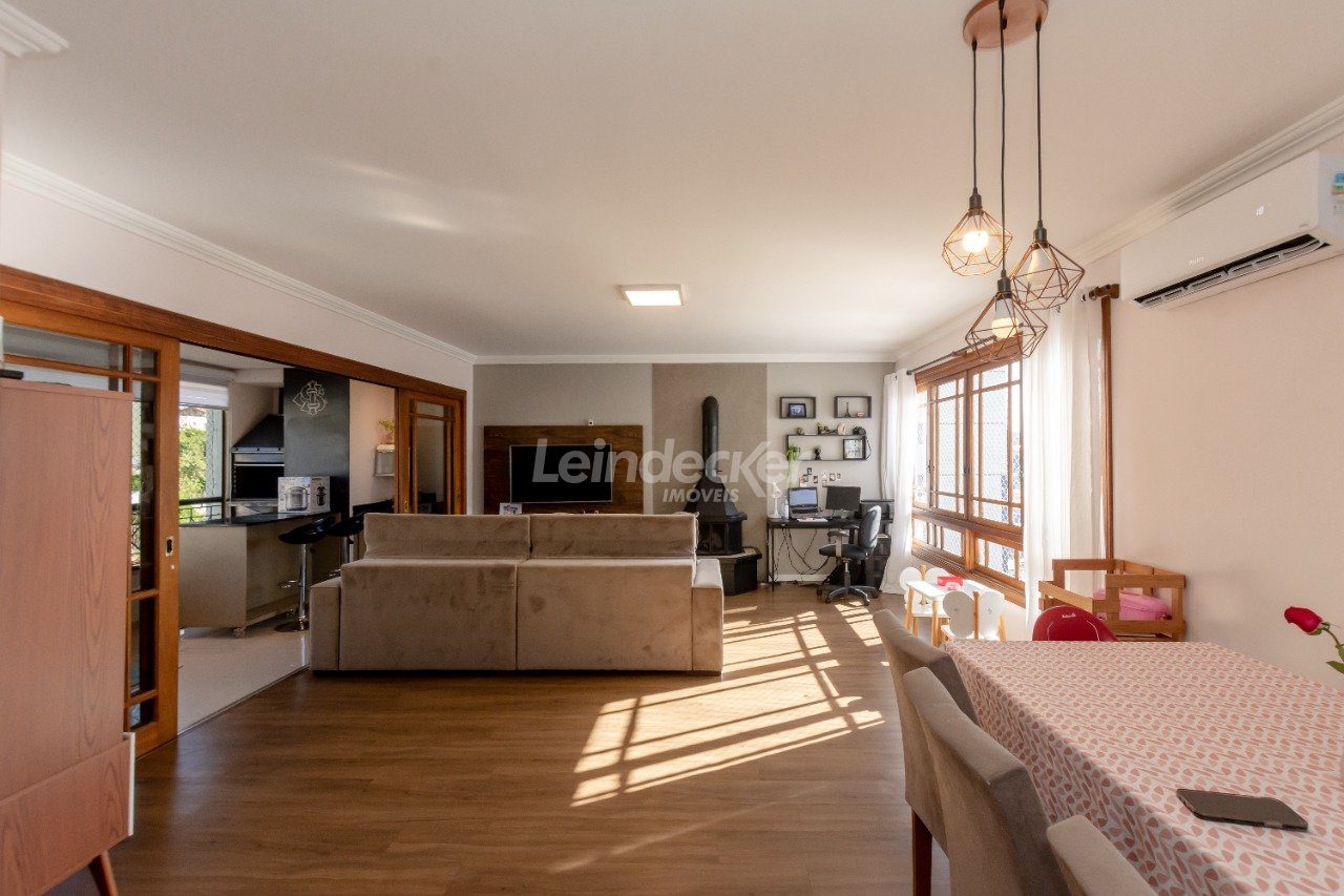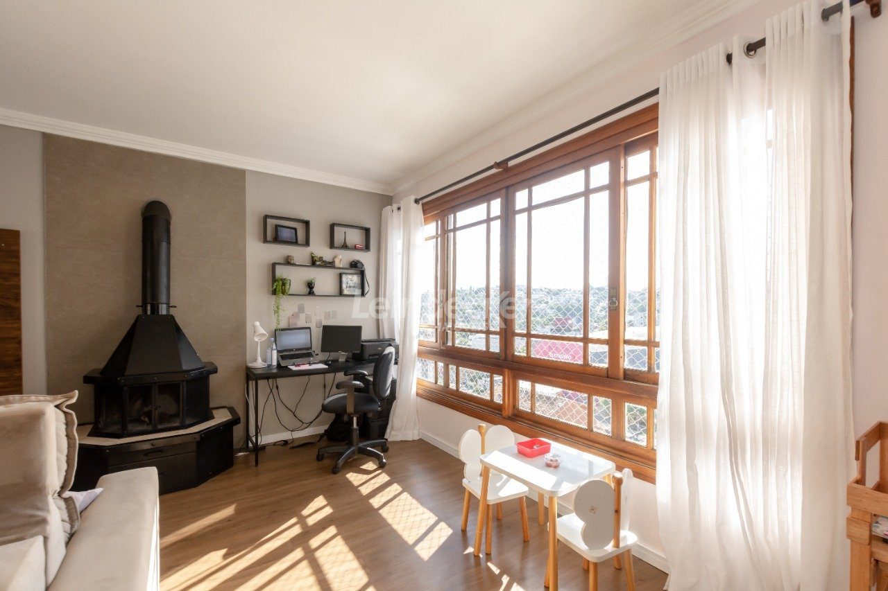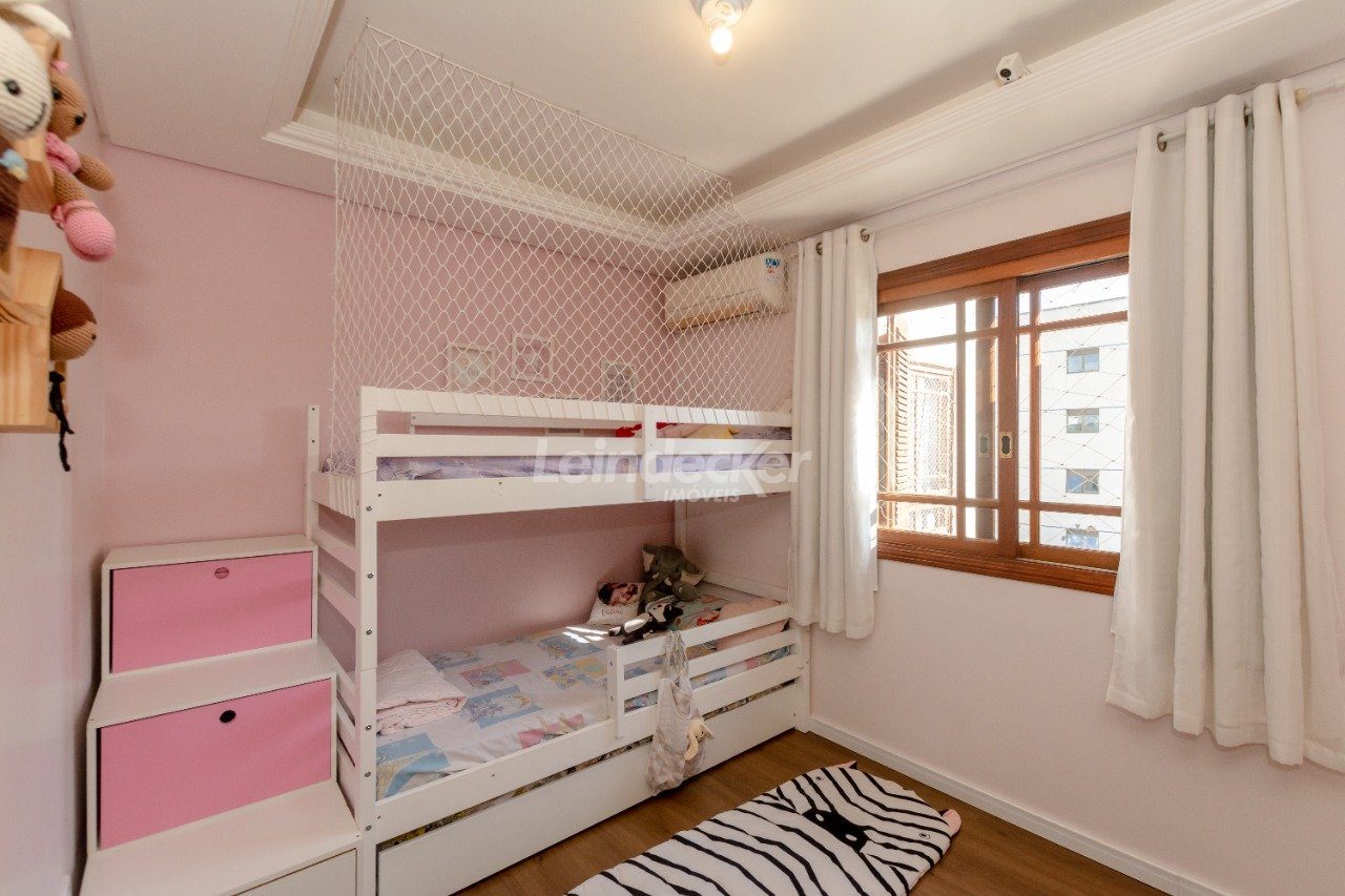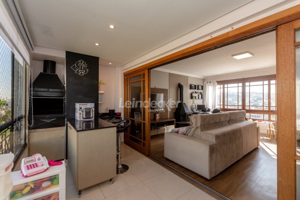 Apartamento com 3 dormitórios, sendo 1 suíte; living 2 ambientes com lareira, sacada com churrasqueira e espaço gourmet, cozinha planejada, área de serviço, piso vinilíco, aquecimento a gás. Apartamento de andar inteiro, com ótima incidência solar e privacidade, fica no 4ª pavimento (três lances de escada). Conta com duas vagas de garagem escrituras e cobertas, lado a lado.