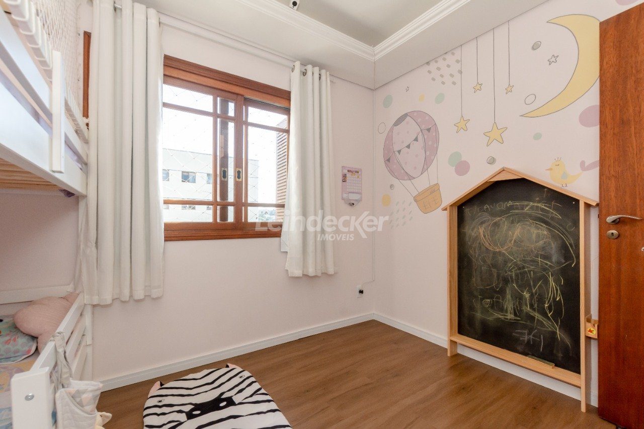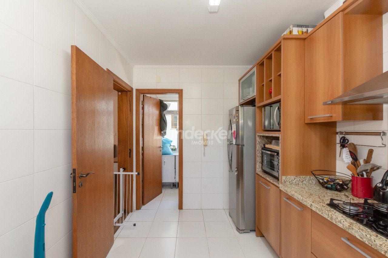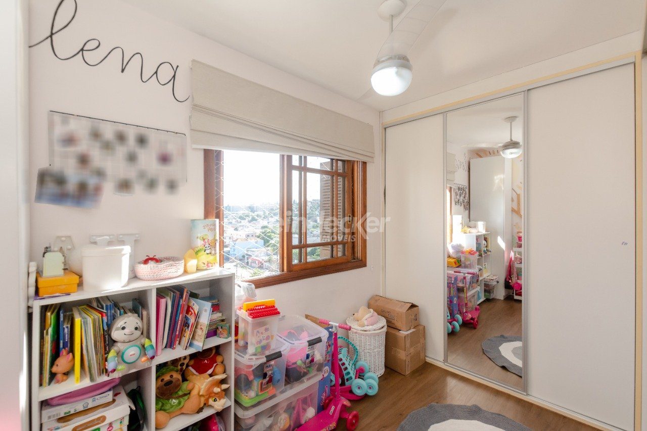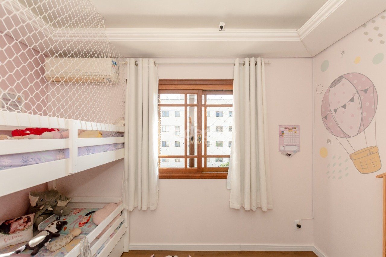 Apartamento com 3 dormitórios, sendo 1 suíte; living 2 ambientes com lareira, sacada com churrasqueira e espaço gourmet, cozinha planejada, área de serviço, piso vinilíco, aquecimento a gás. Apartamento de andar inteiro, com ótima incidência solar e privacidade, fica no 4ª pavimento (três lances de escada). Conta com duas vagas de garagem escrituras e cobertas, lado a lado.